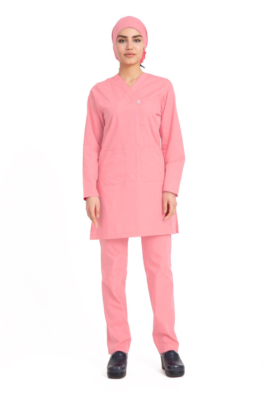 Hemşire Tesettür Terikoton Takım Tst-01 48-3XL Özel Sipariş - Toz Pembe