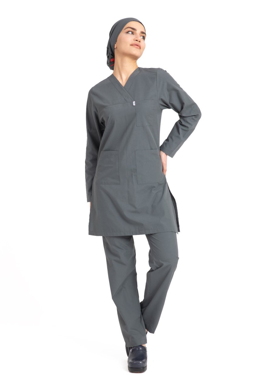 Hemşire Tesettür Terikoton Takım Tst-01 50-4XL Özel Sipariş - Füme