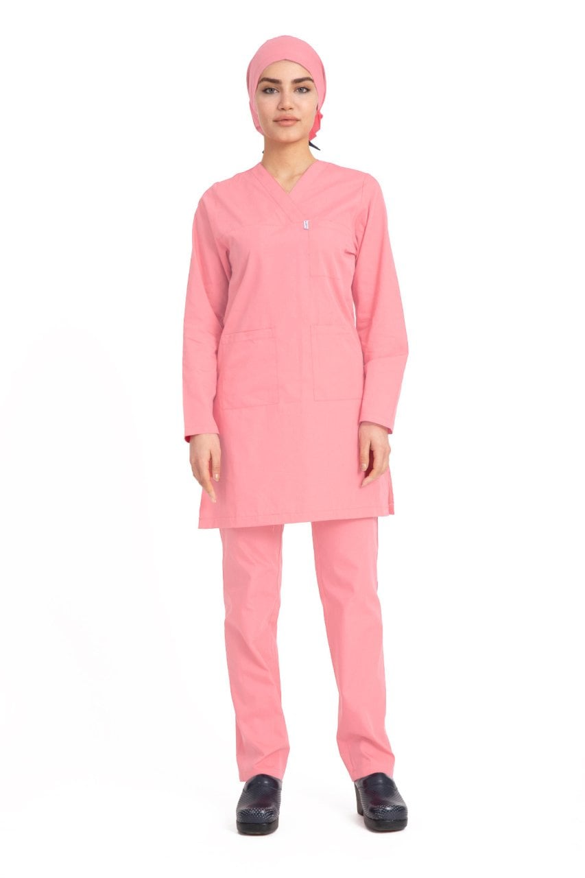 Hemşire Tesettür Terikoton Takım Tst-01 52-5XL Özel Sipariş - Toz Pembe
