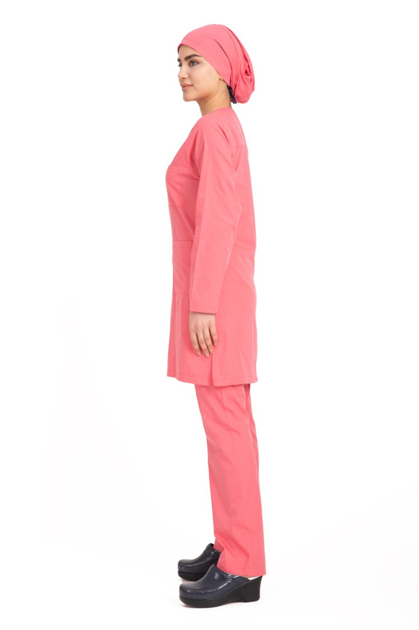 Hemşire Tesettür Terikoton Takım Tst-01 62-10XL Özel Sipariş - Mercan