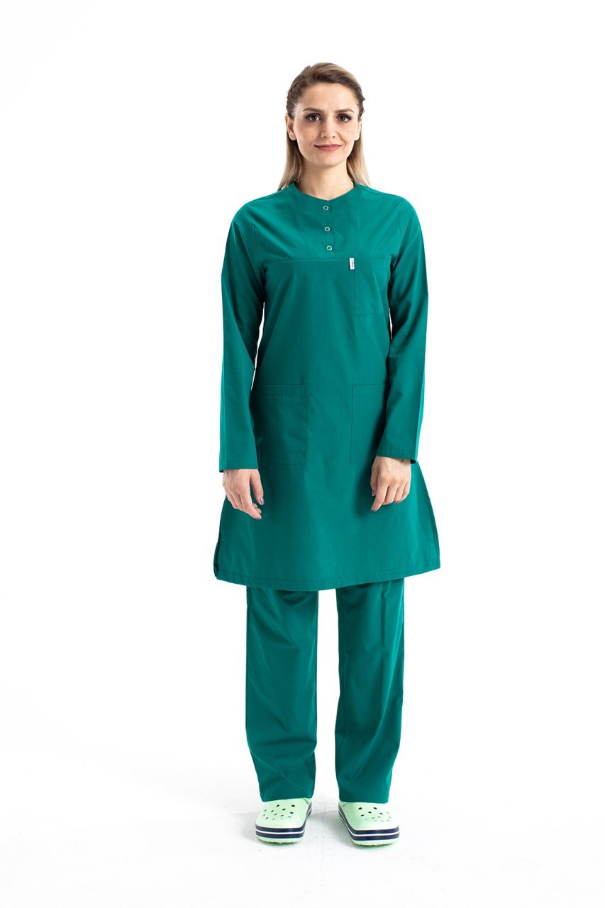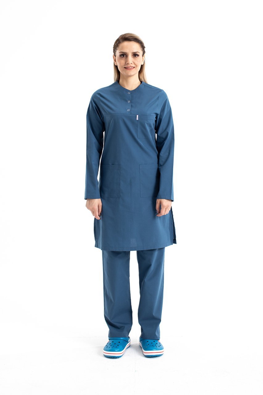 Hemşire Tesettür Takım Forma Bedenleri Standart olup sivil hayatta giydiğiniz elbisenin bedenlerden herhangi bir farkı yoktur.