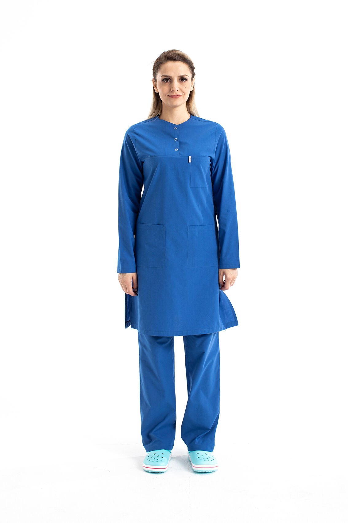 Hemşire Tesettür Terikoton Takım Tst-02 48-3XL Özel Sipariş - Par.Mavi
