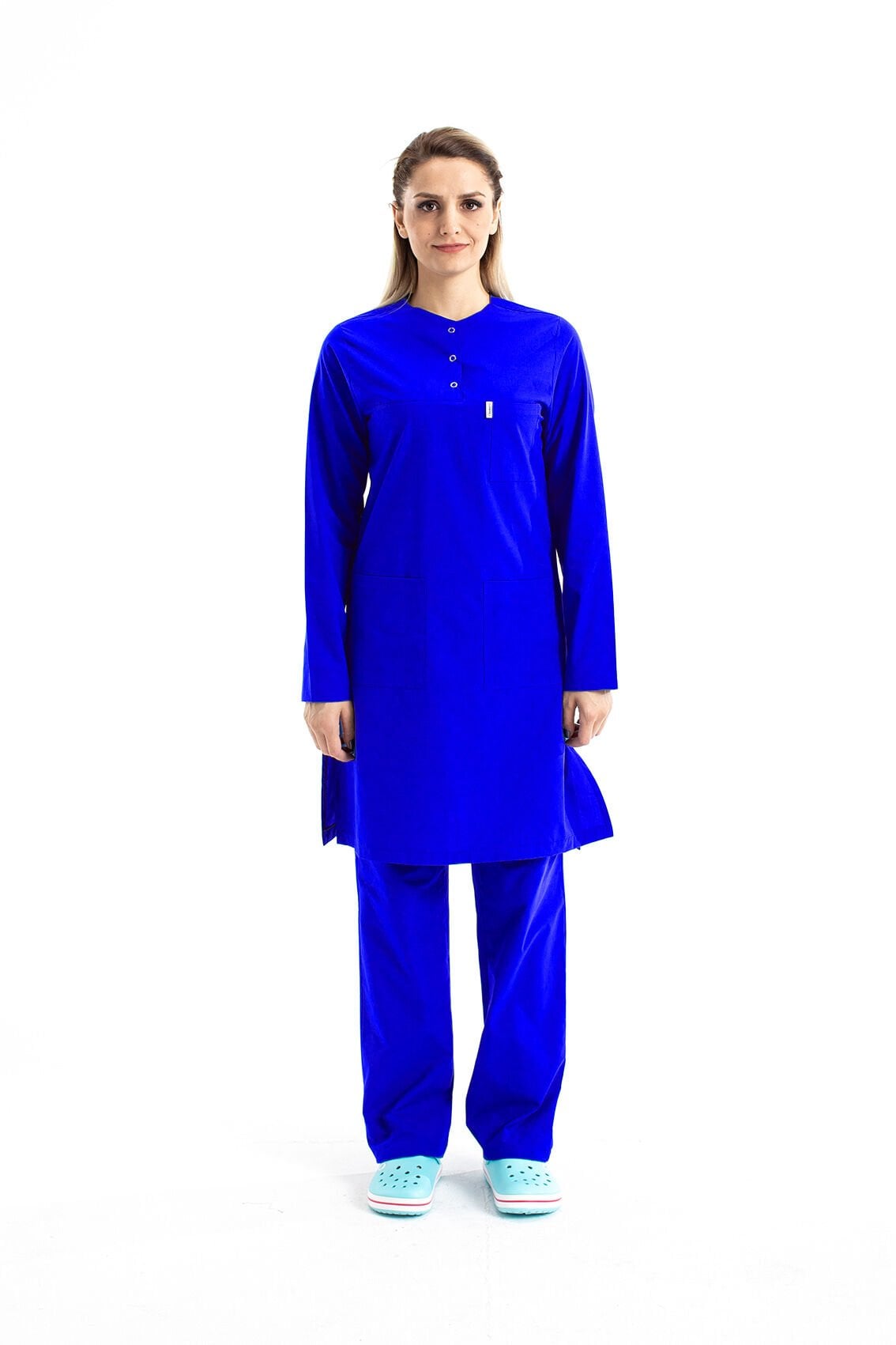 Hemşire Tesettür Terikoton Takım Tst-02 52-5XL Özel Sipariş - Saks Mavi