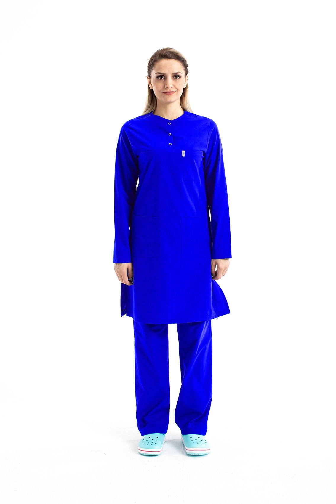 Hemşire Tesettür Terikoton Takım Tst-02 60-9XL Özel Sipariş - Saks Mavi