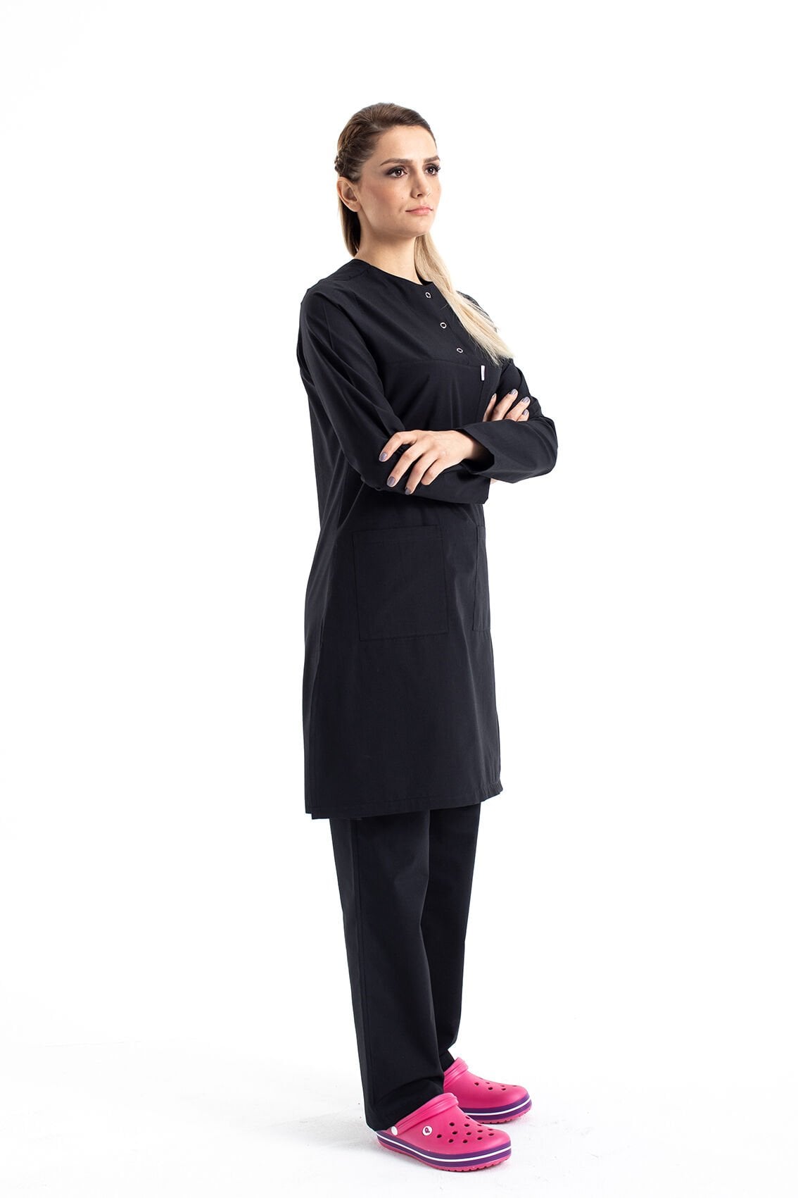 Hemşire Tesettür Takım Forma Bedenleri Standart olup sivil hayatta giydiğiniz elbisenin bedenlerden herhangi bir farkı yoktur.