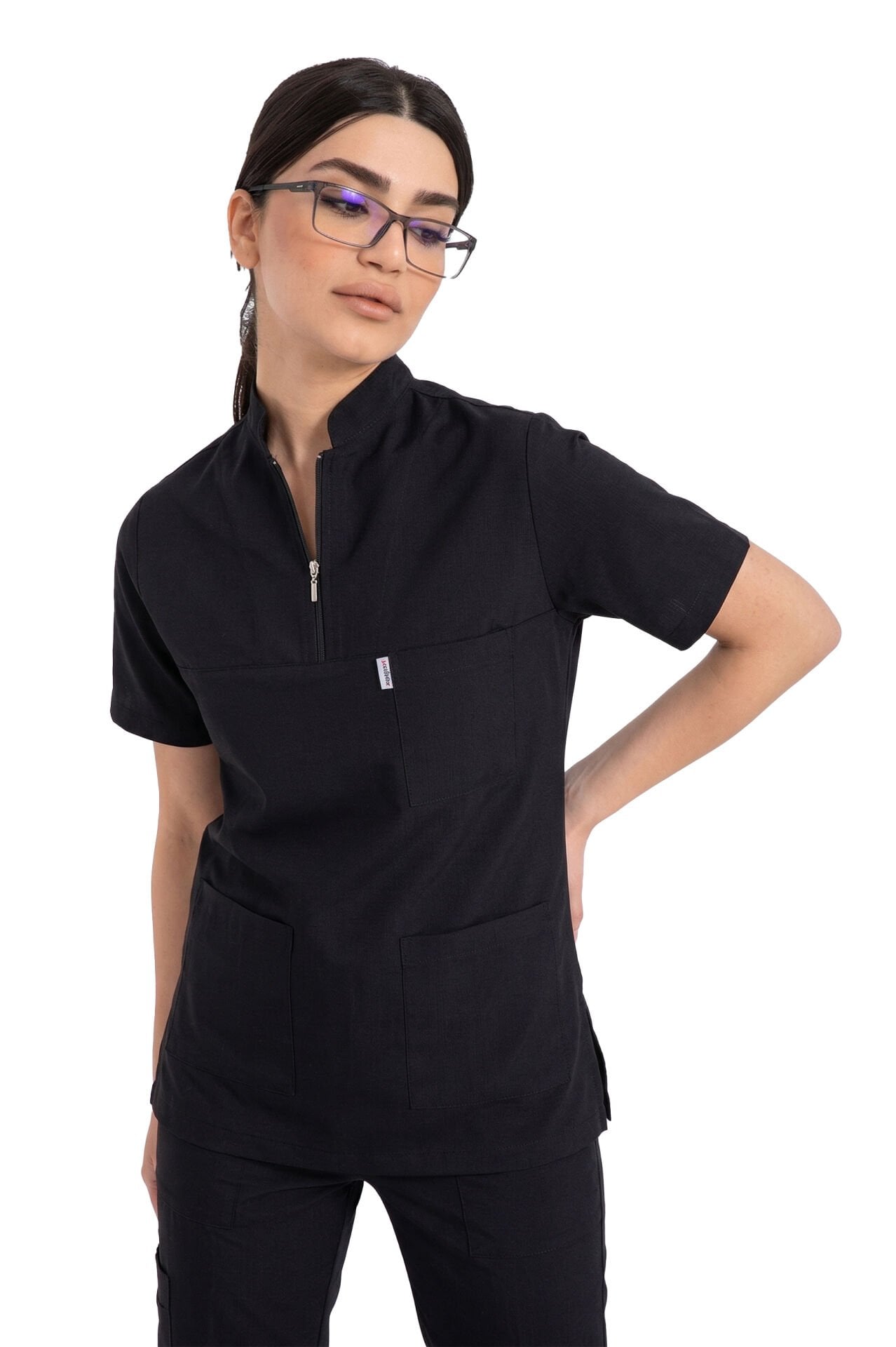 Labor Tekstil’in modern tasarım çizgisini yansıtan İdx-1 Serisi, yoğun iş temposunda stilinden ödün vermeyen kadın sağlık profesyonelleri için özel olarak geliştirildi. Siyah rengin asaletini, likralı pamuklu kumaşın doğal dokusuyla birleştiren bu takım, gün boyu süren bir rahatlık vaat ediyor.