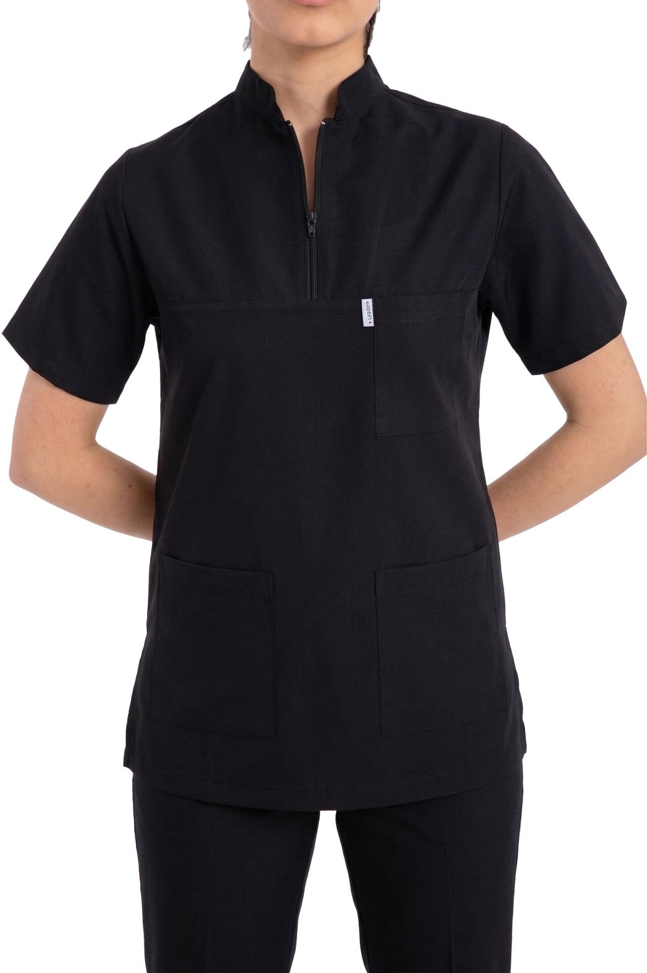 Siyah rengin profesyonel ağırlığını taşıyan bu kadın scrubs modeli, kolay yıkanabilir ve şekil koruyucu özelliği sayesinde uzun ömürlü kullanım için idealdir. En kaliteli cerrahi forma arayışınızda, Labor Tekstil güvencesiyle sunulan bu model, uygun fiyatlı medikal giyim avantajını en yüksek kaliteyle buluşturuyor.