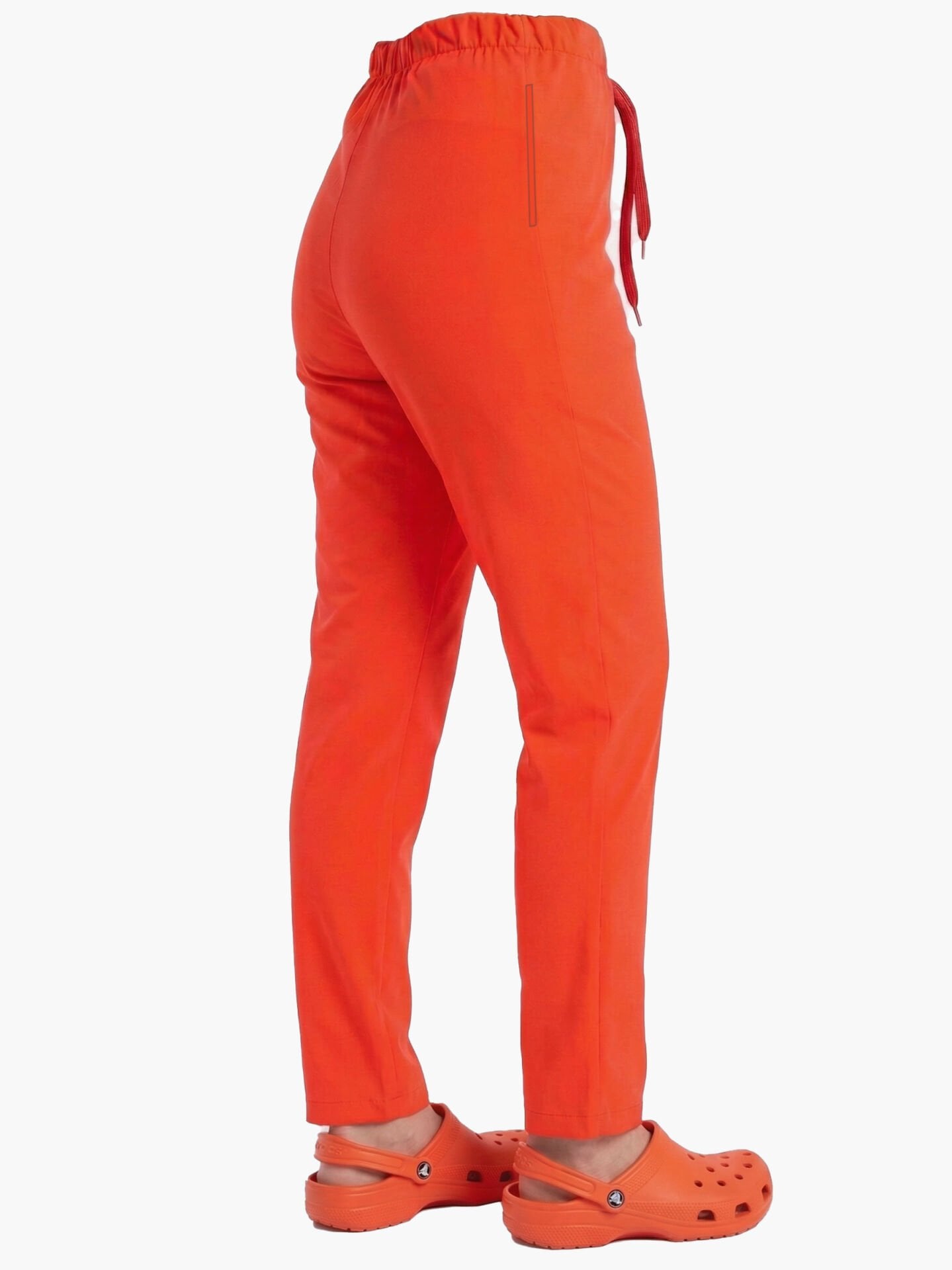 Şıklık ve Konforun Buluşması: Kadın Likralı Scrubs Cerrahi Takım - Hakim Yaka Havuç Kesim İDX-1 - Neon Turuncu