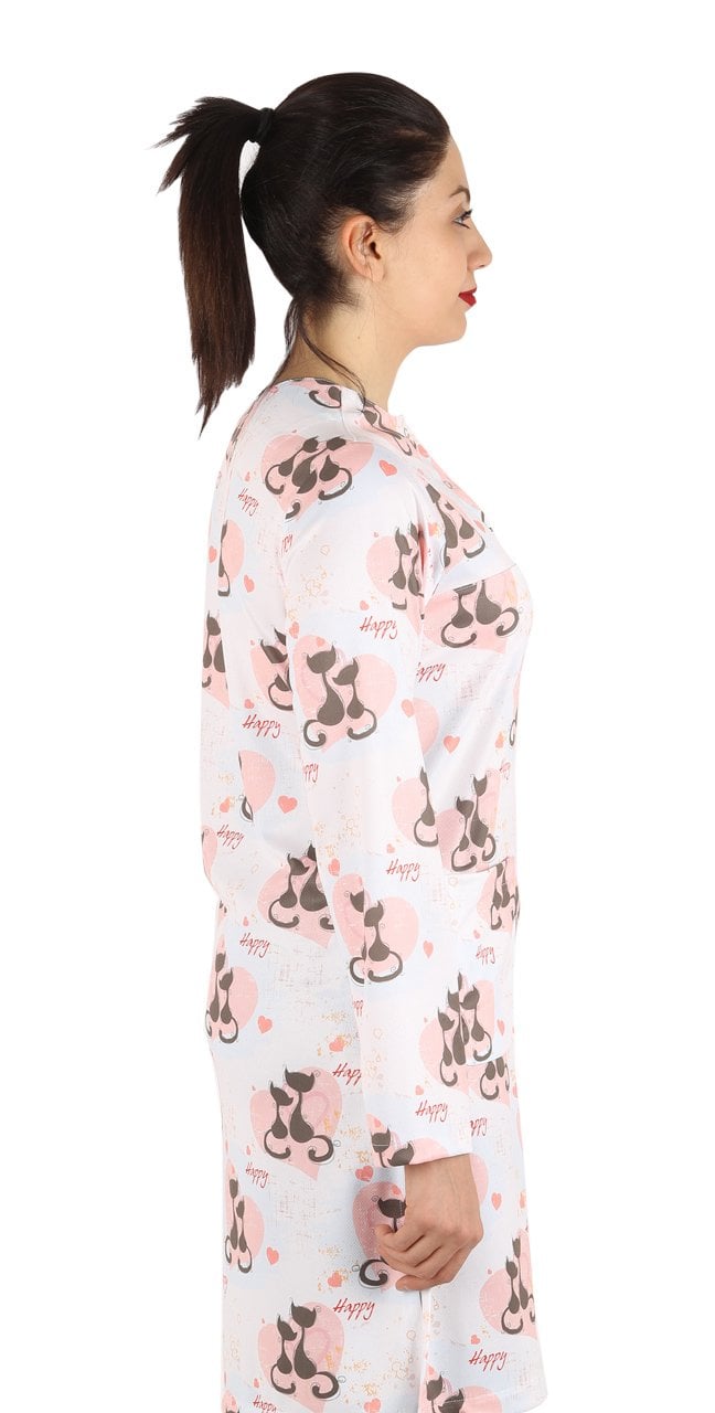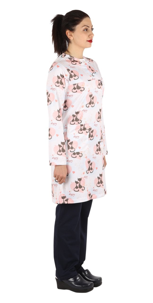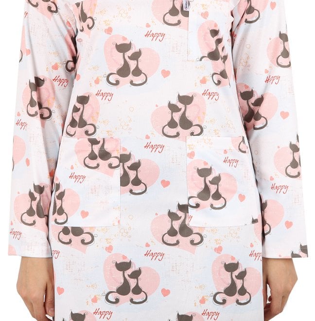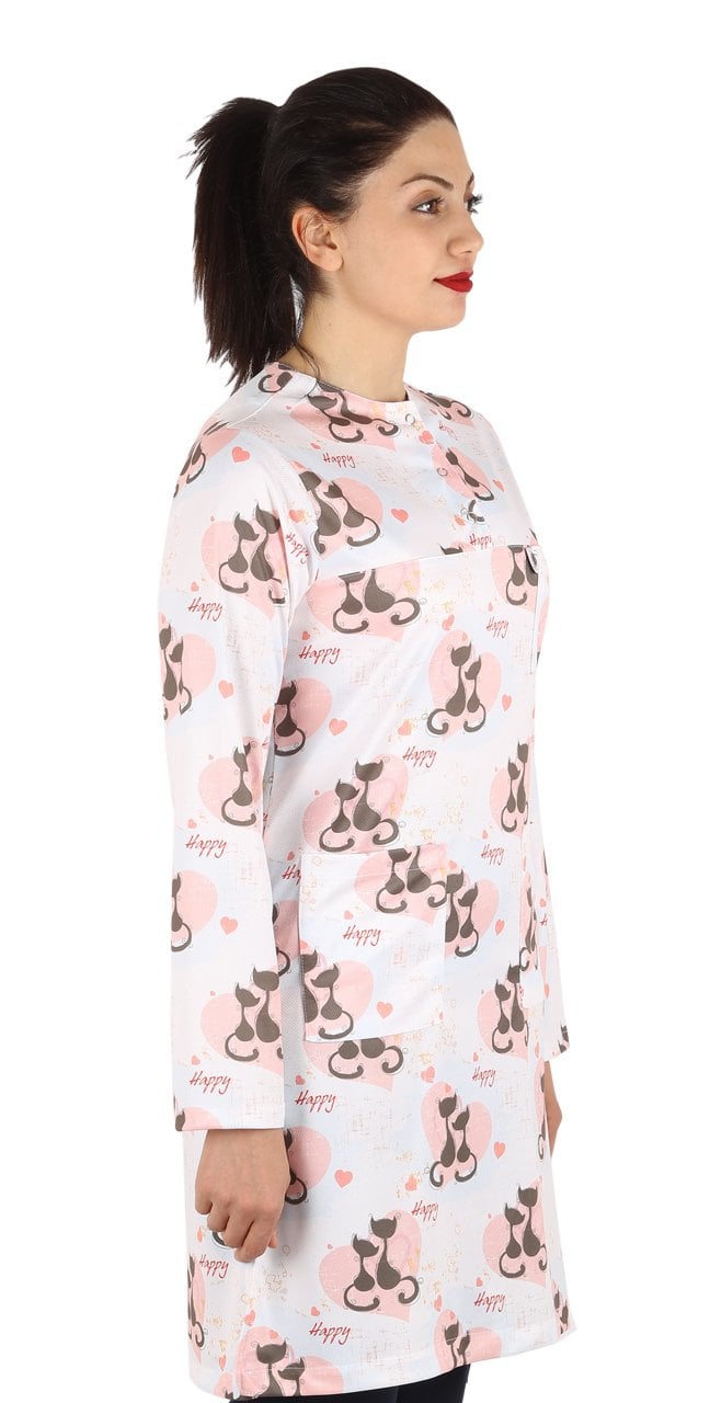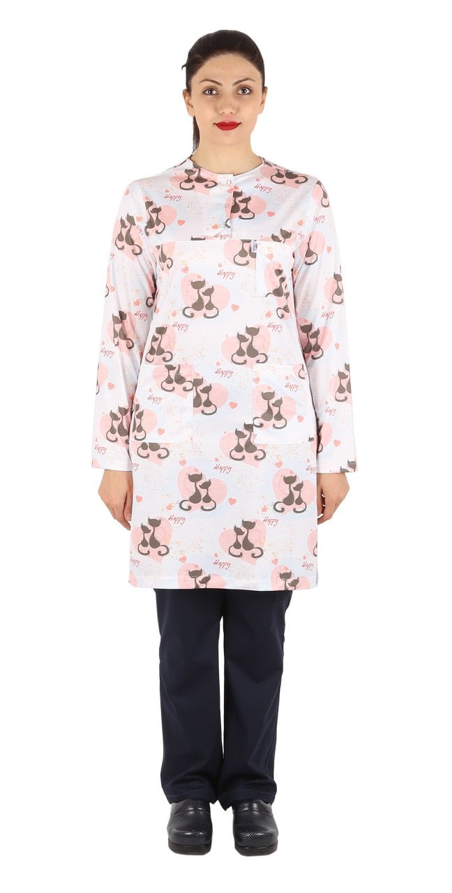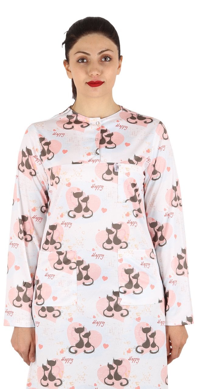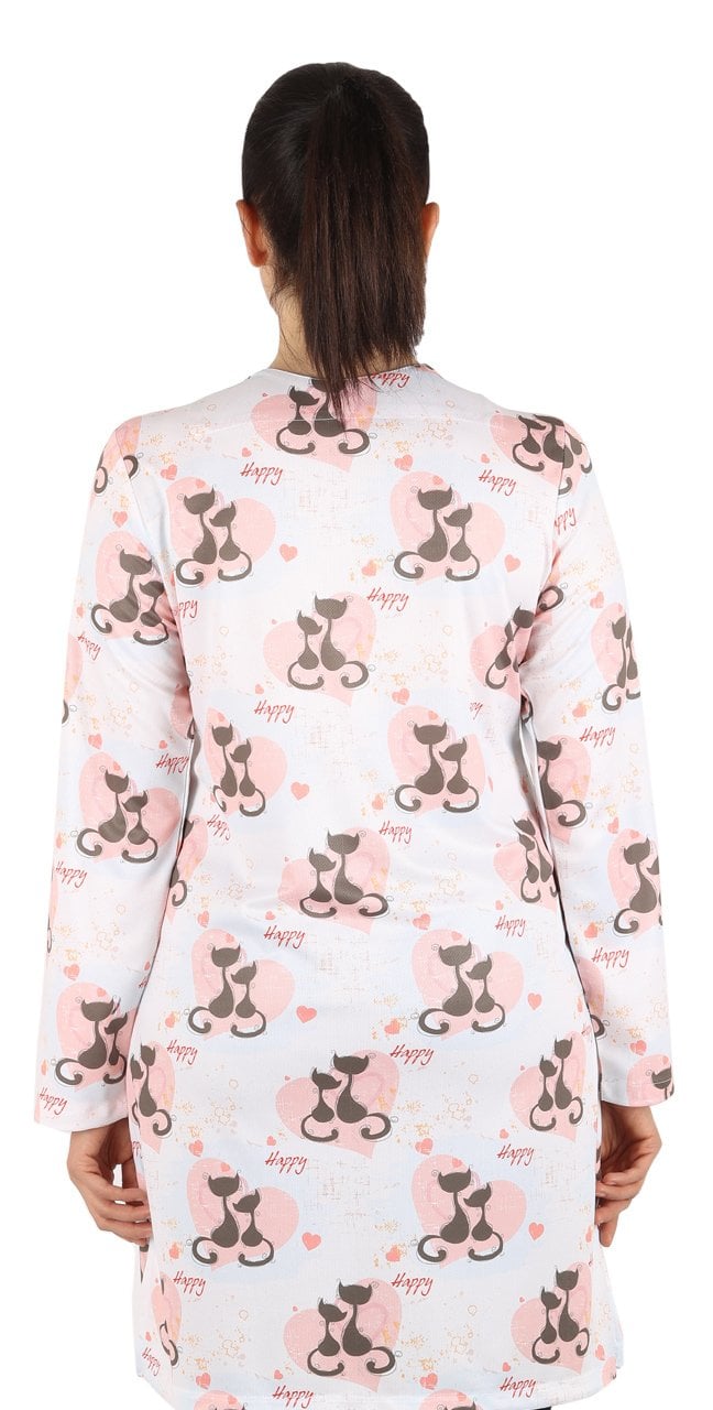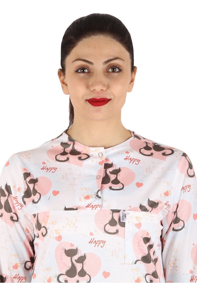 Hemşire Tesettür Kedi Desenli Tek Üst Dry Touch İnce Kumaş