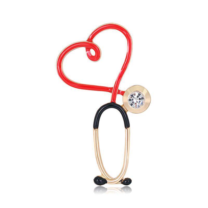 Kırmızı kalp steteskop metal rozet 02