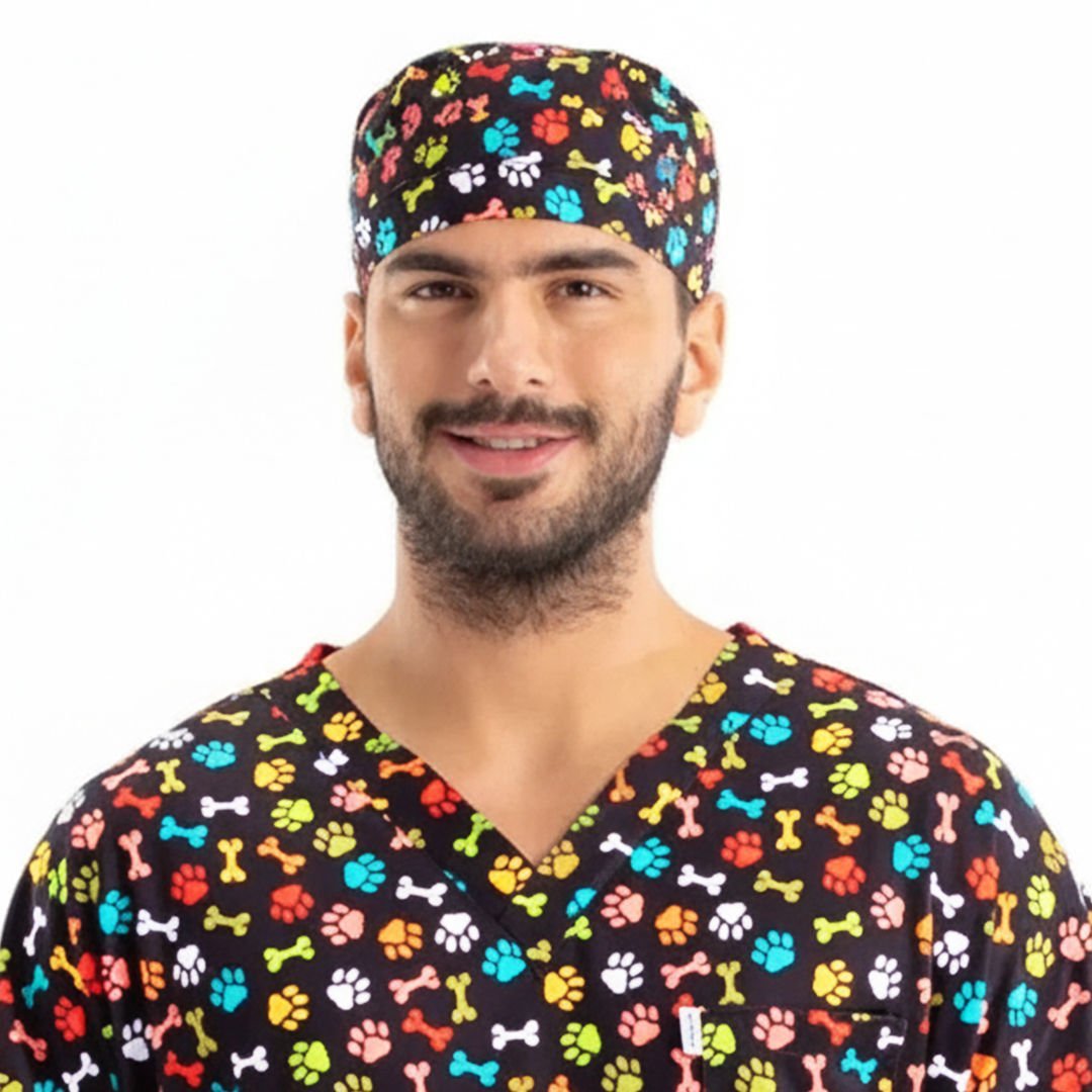 Cerrahi Bone - Renkli Patili Kemik Desen -22- (Unisex) - Dry Touch Kumaş