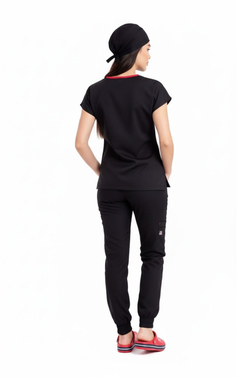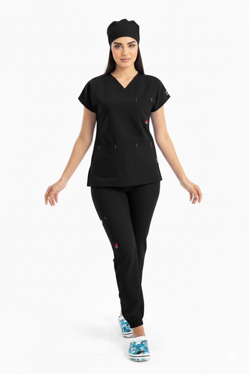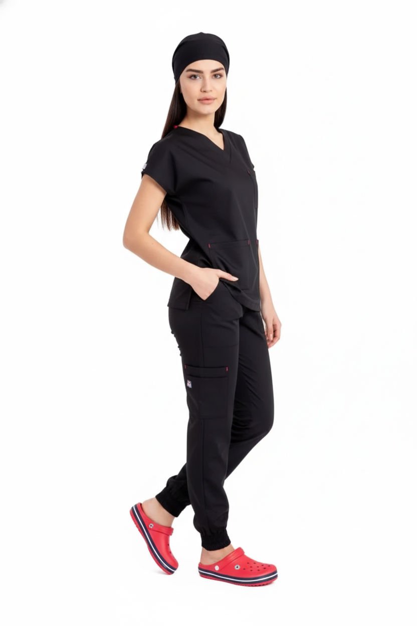 LABOR | Kadın Siyah Jogger Scrubs Takım: Klasik Şıklık, Tam Konfor