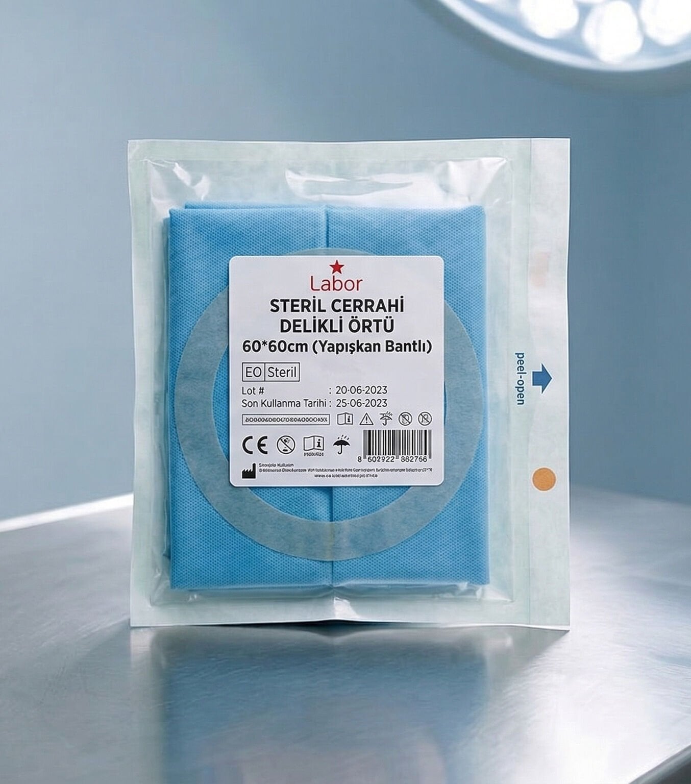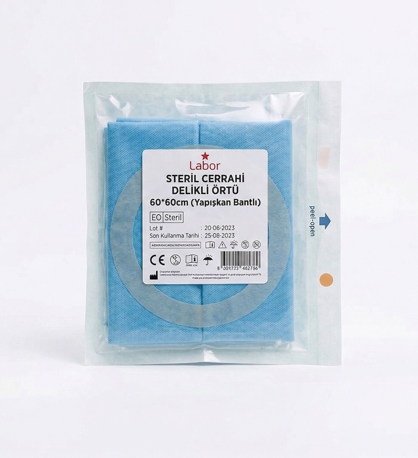 Tıbbi müdahalelerde hijyen ve uygulama kolaylığını bir araya getiren Labor Steril Cerrahi Delikli Örtü, operasyon alanının izolasyonu için en güvenilir çözümü sunar. 60x60 cm ideal ölçüleri ve güçlü yapışkan bandı sayesinde küçük ve orta ölçekli cerrahi işlemler için özel olarak tasarlanmıştır.