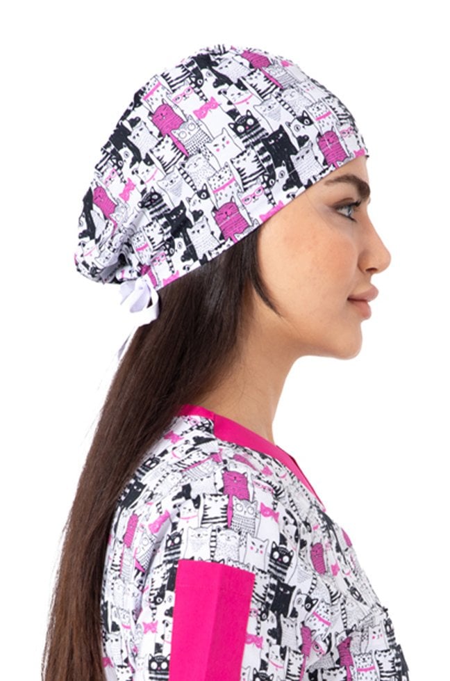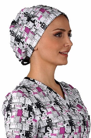 Likrali Pamuklu Kedi Desenli Kumaş Bone