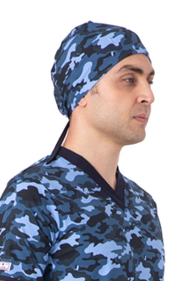 Hem şık hem de konforlu bir cerrahi bone arayanlar için ideal bir seçenek! Likralı pamuklu kumaşı sayesinde gün boyu rahatlık sunarken, mavi kamuflaj deseniyle de tarzınızı yansıtmanıza olanak tanır.