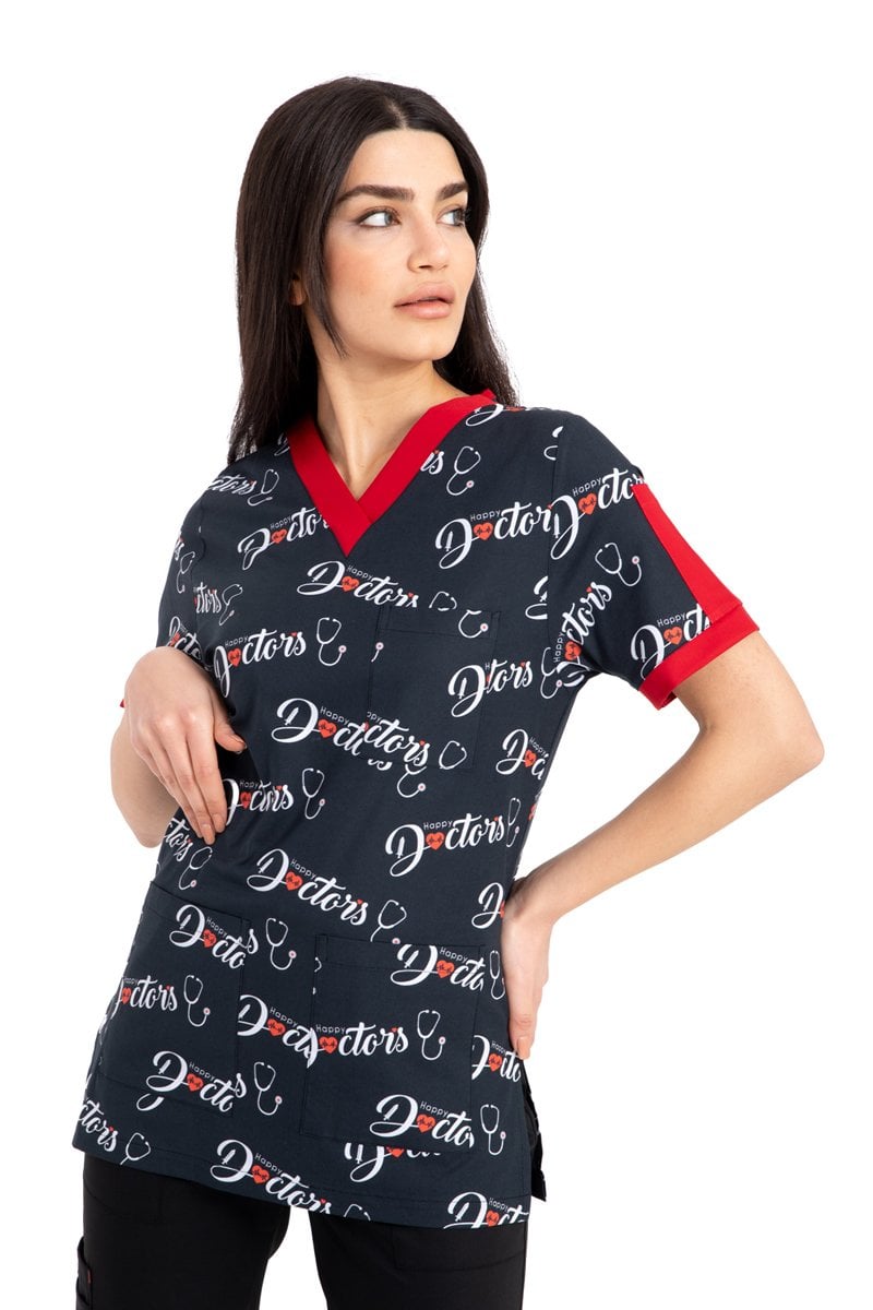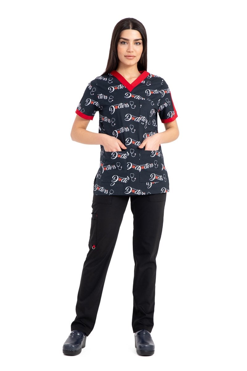 Likrali Pamuklu Kadın Desenli Cerrahi Forma