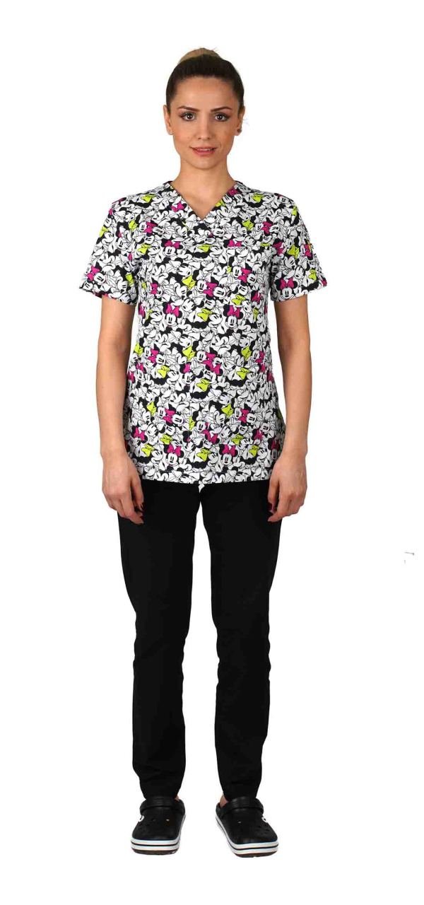 Likrali Pamuklu Kadın Desenli Cerrahi Forma
