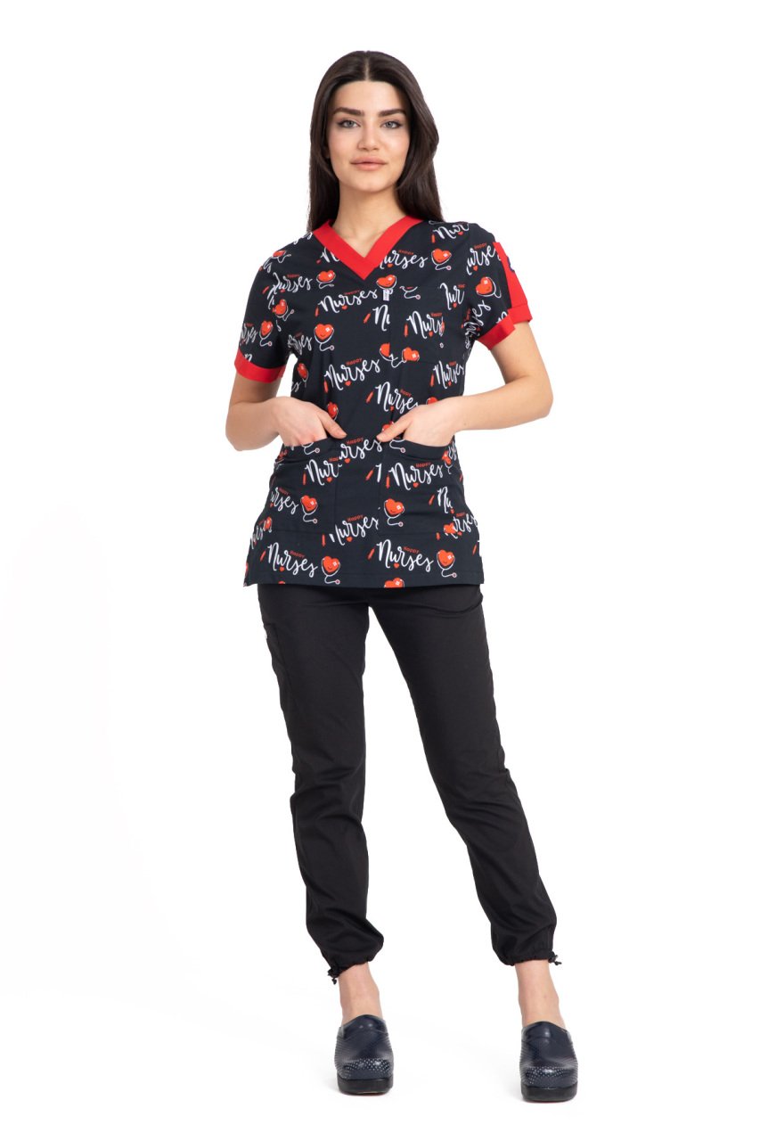 Likrali Pamuklu Kadın Desenli Cerrahi Forma