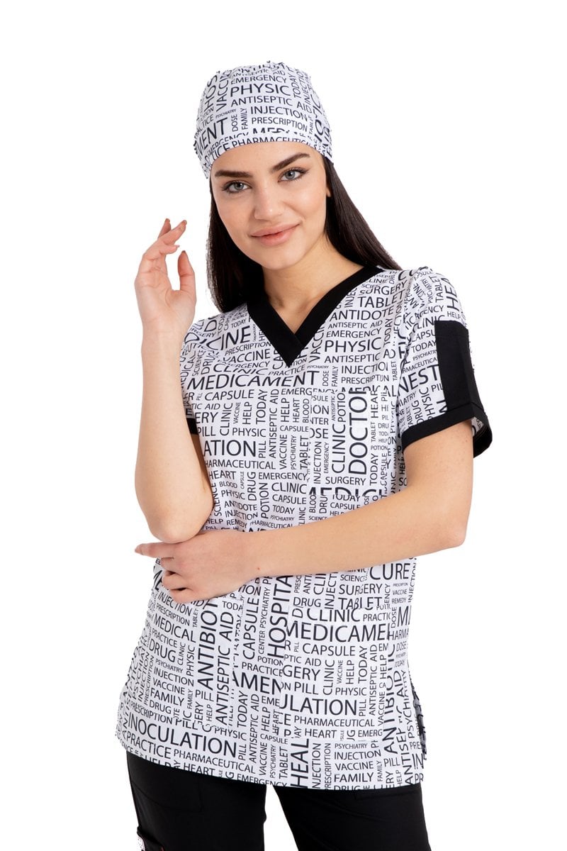 Likralı Pamuklu Kadın Cerrahi Üst Tıp Yazılı Rg03