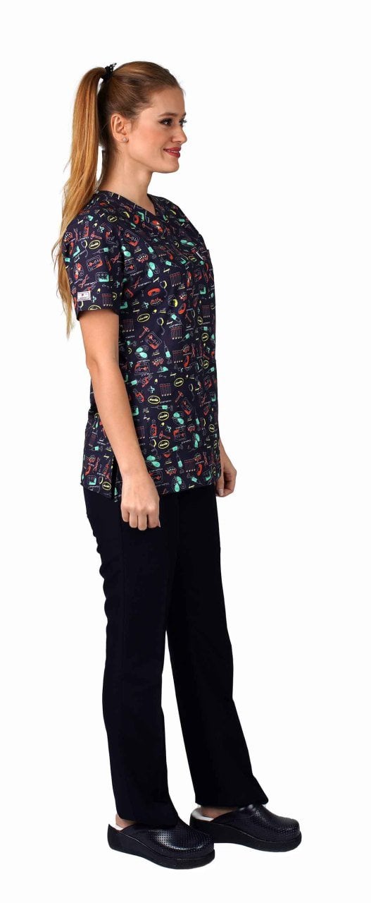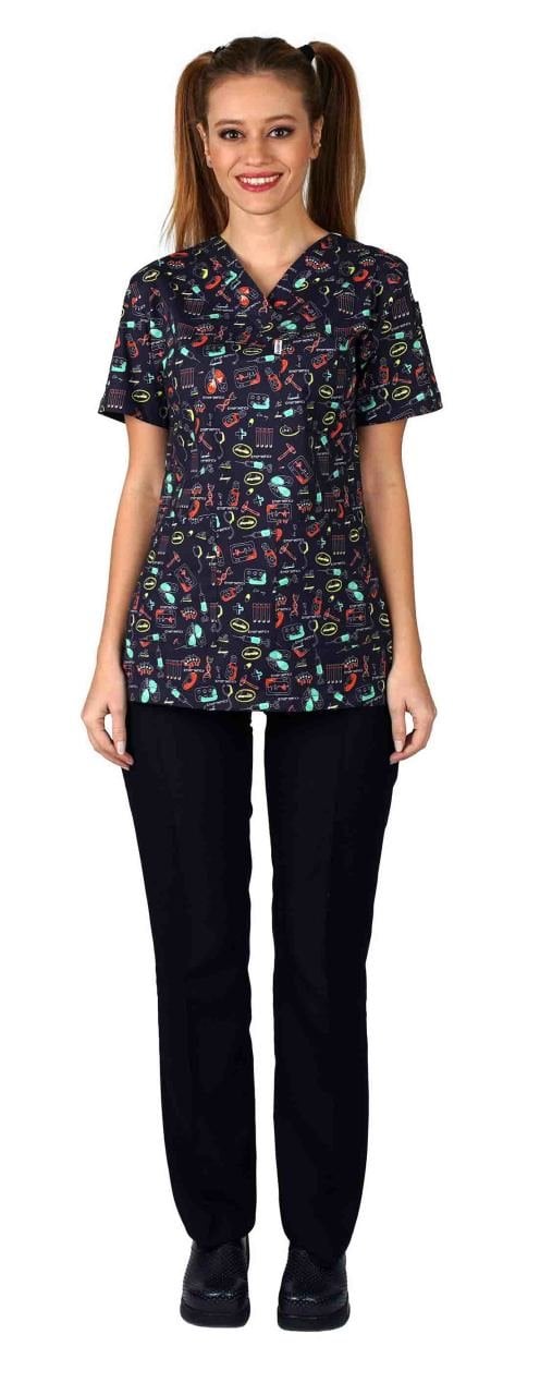 Likrali Pamuklu Kadın Desenli Cerrahi Forma