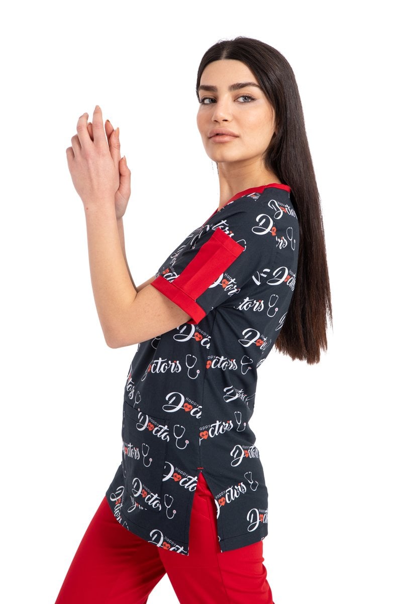 Likrali Pamuklu Kadın Desenli Cerrahi Forma