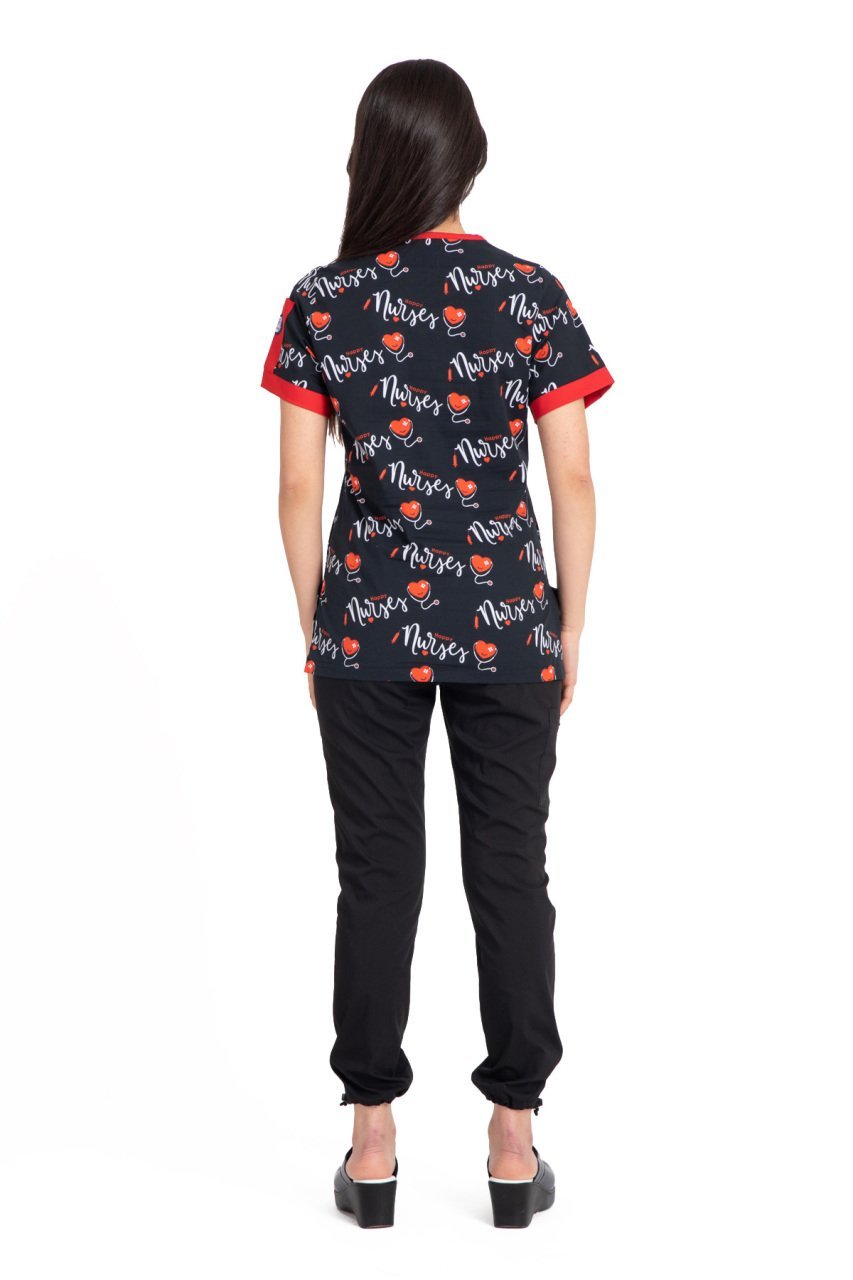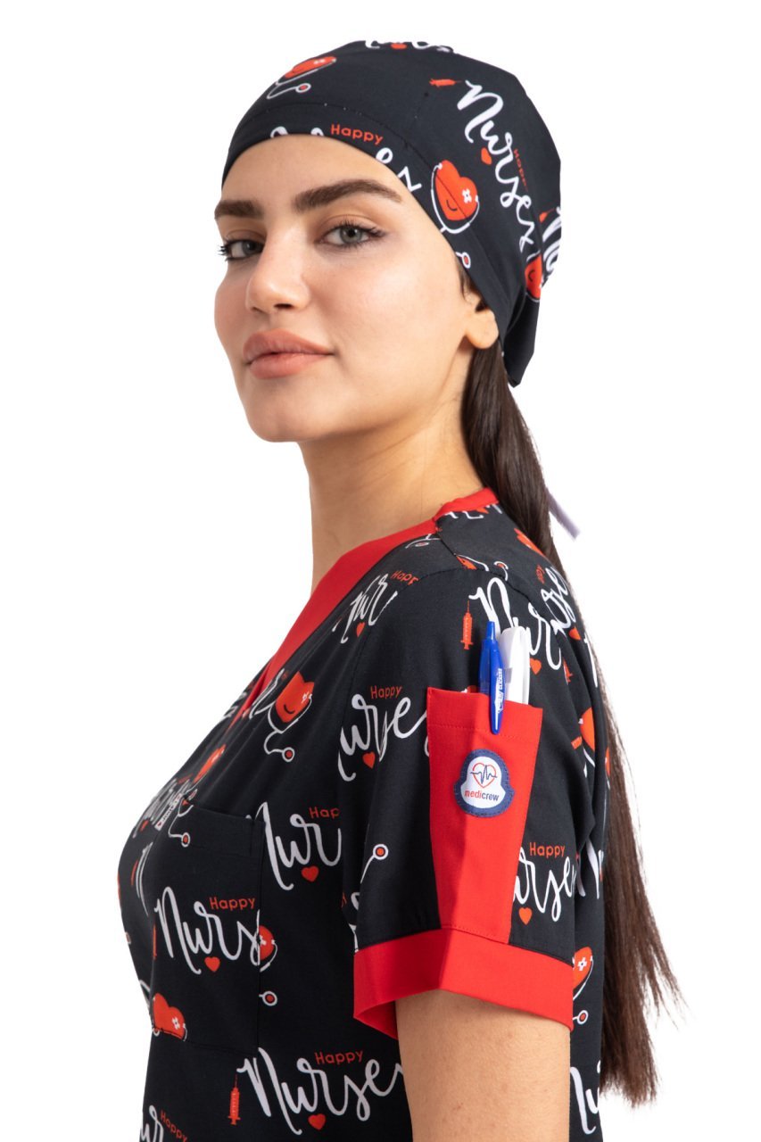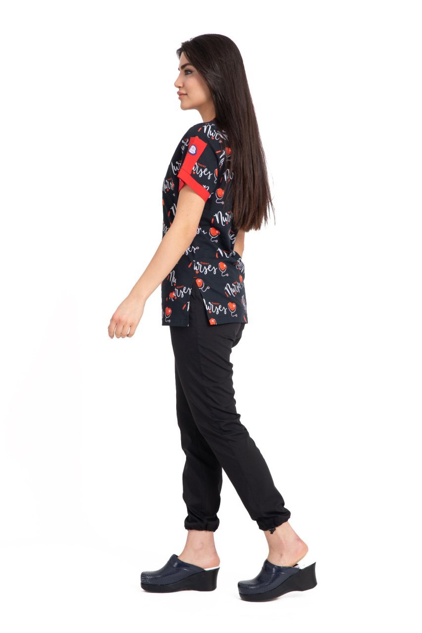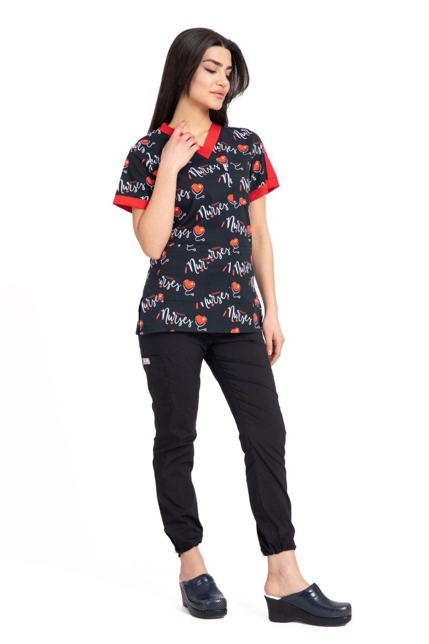 Likrali Pamuklu Kadın Desenli Cerrahi Tek Üst Forma