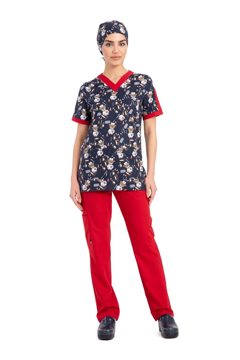 Likrali Pamuklu Kadın Desenli Cerrahi Forma