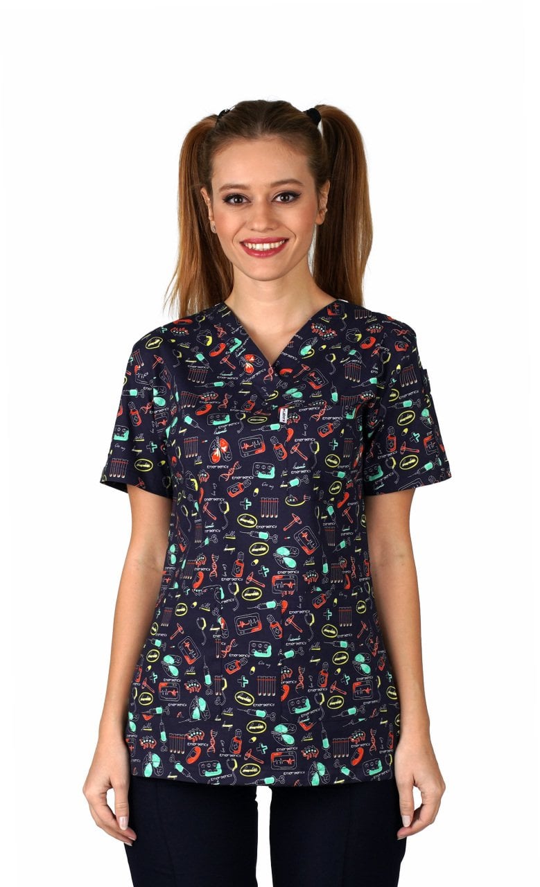 Likrali Pamuklu Kadın Desenli Cerrahi Forma