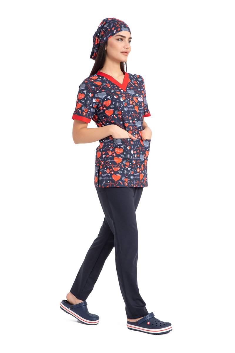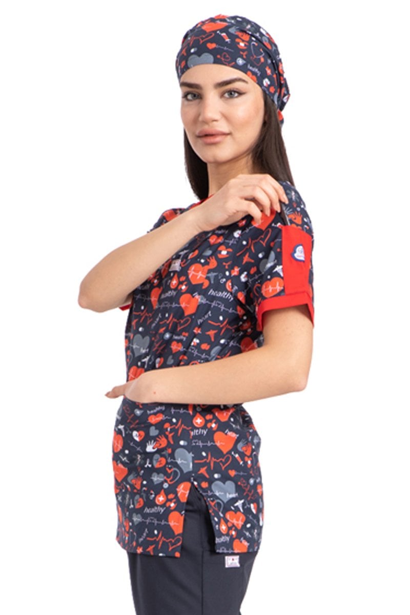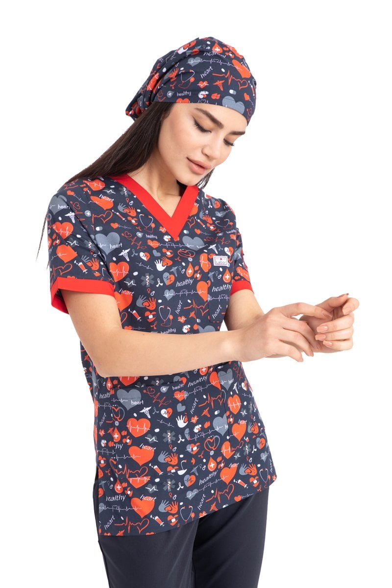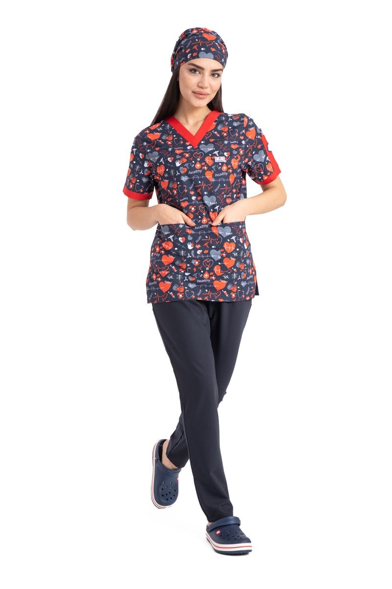 Likrali Pamuklu Kadın Desenli Cerrahi Forma