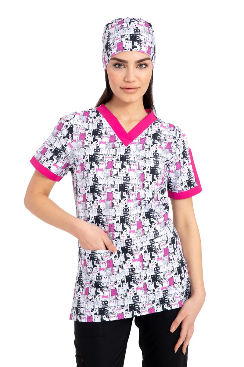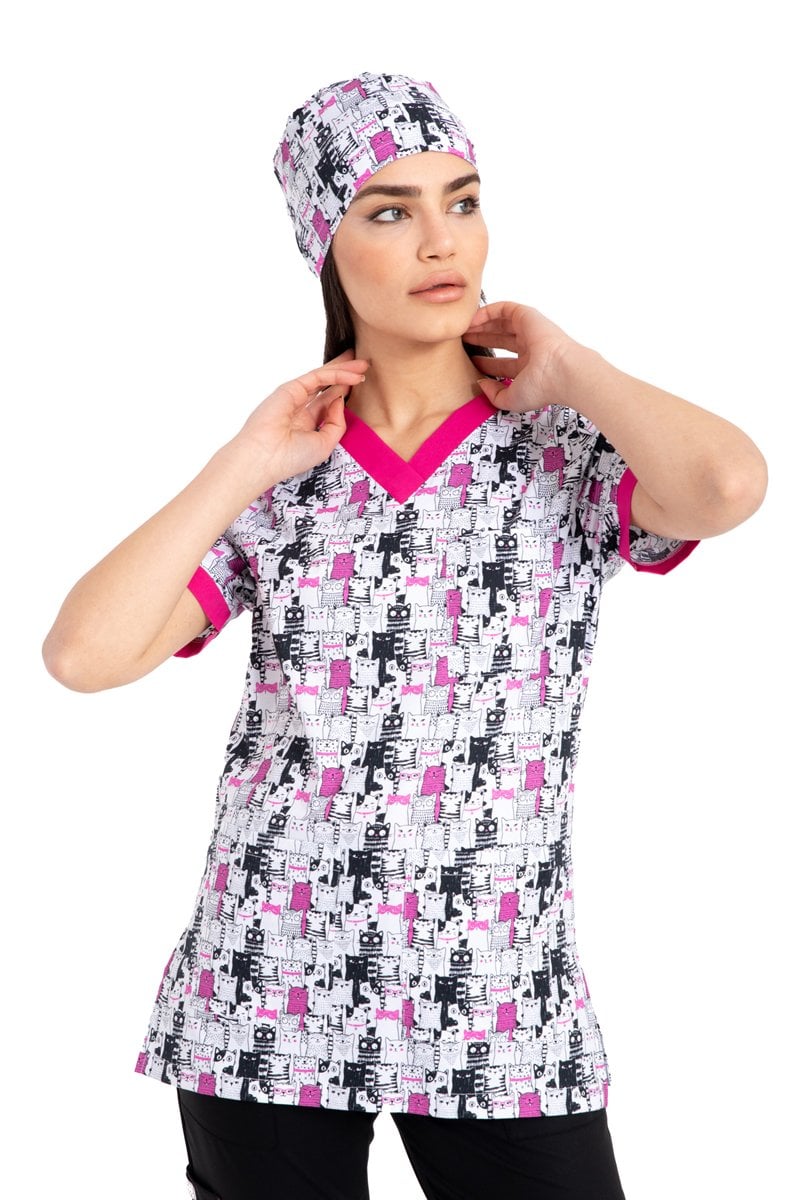 Likrali Pamuklu Kadın Desenli Cerrahi Forma
