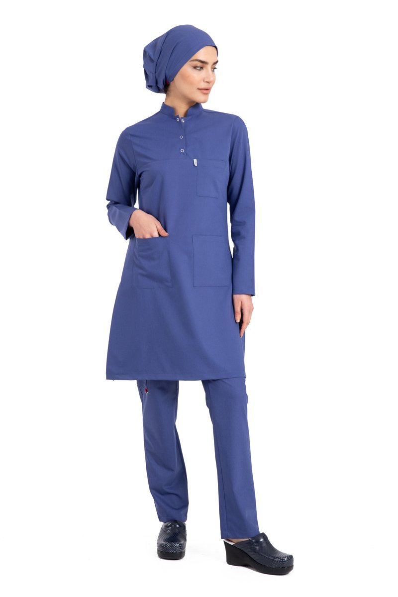 Labor Tesettür Scrubs Forma TST-03 | Elastik Likralı Pamuklu | Doktor & Hemşire 34/XXS - İndigo