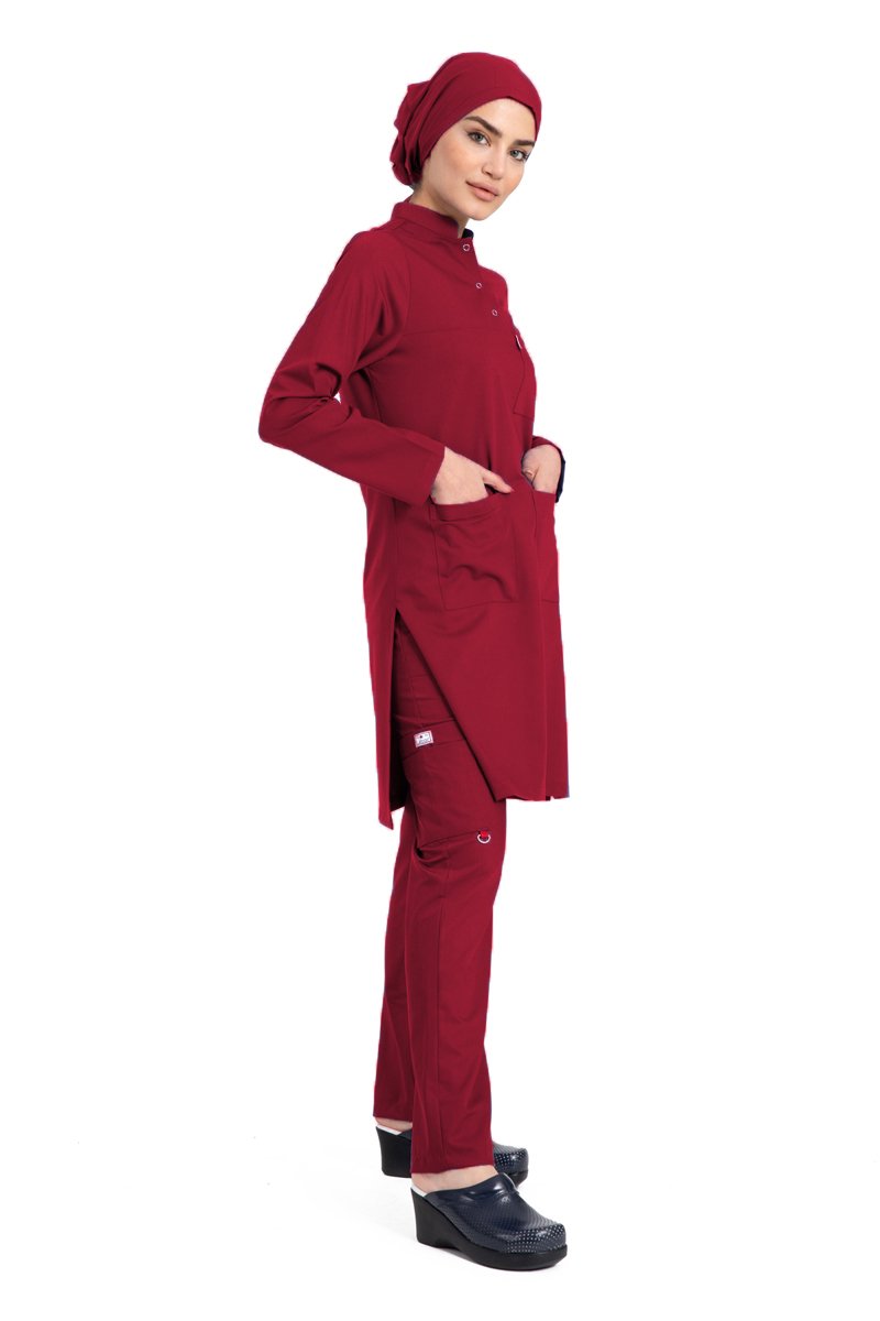Labor Tesettür Scrubs Forma TST-03 | Elastik Likralı Pamuklu | Doktor & Hemşire 42/L - Bordo