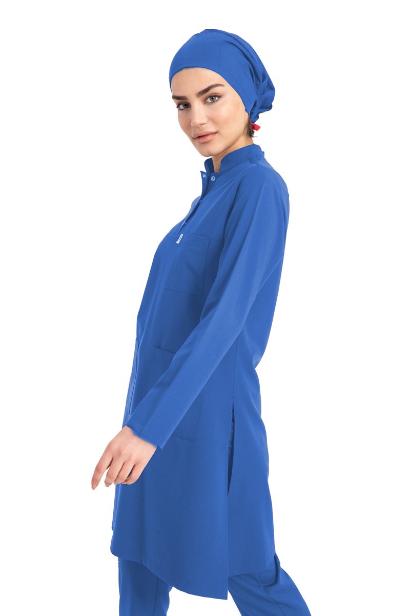 Labor Tesettür Scrubs Forma TST-03 | Elastik Likralı Pamuklu | Doktor & Hemşire 42/L - Parlement Mavi