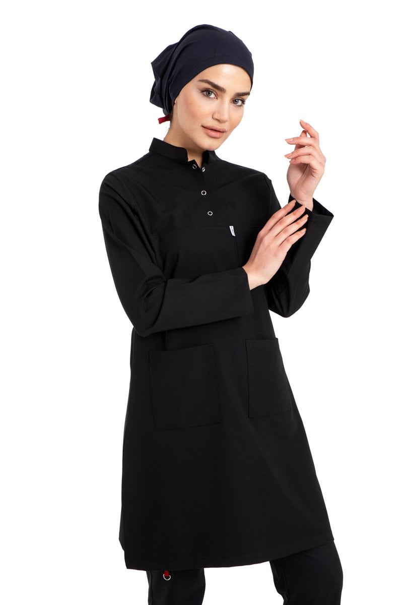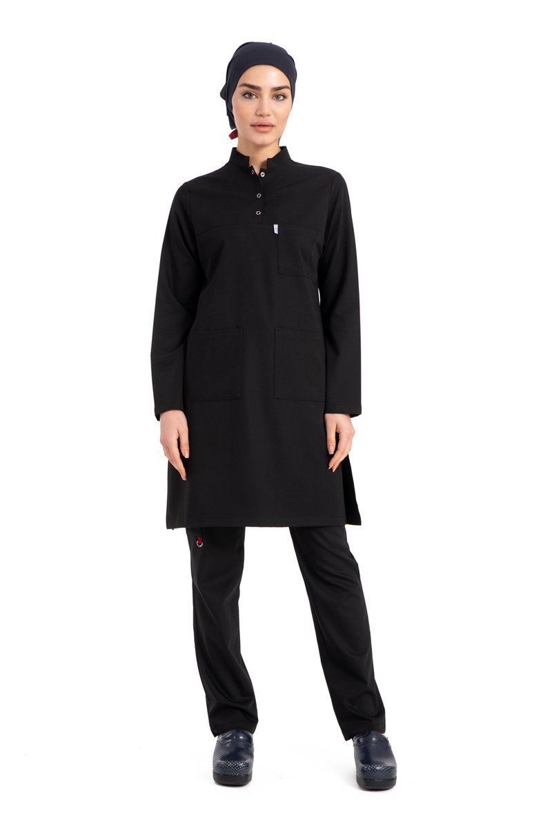 Labor Tesettür Scrubs Forma TST-03 | Elastik Likralı Pamuklu | Doktor & Hemşire 46/XXL - Siyah