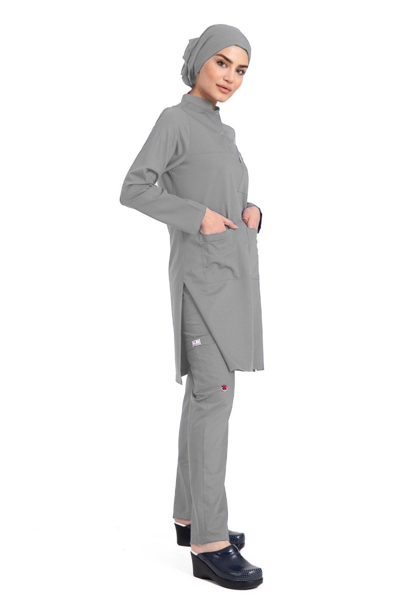 Labor Tesettür Scrubs Forma TST-03 | Elastik Likralı Pamuklu | Doktor & Hemşire 50/4XL Özel Sipariş - Gri