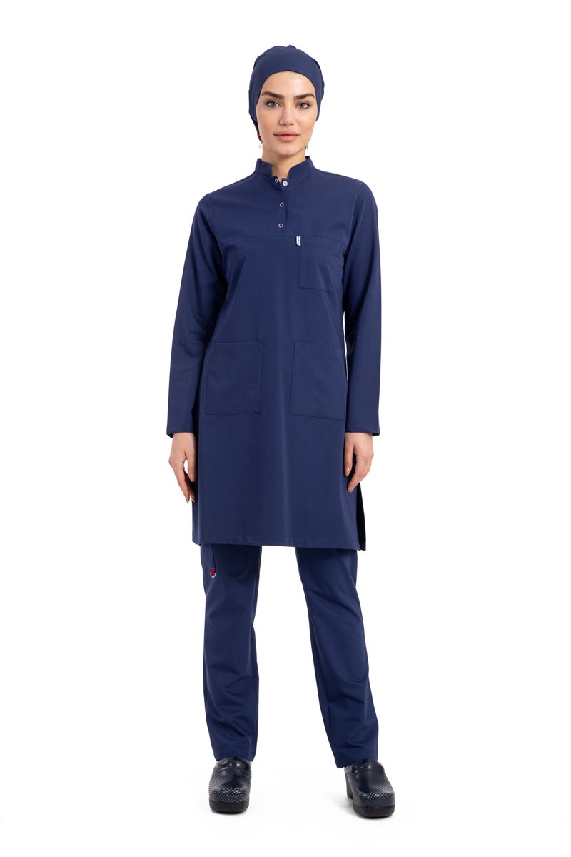 Labor Tesettür Scrubs Forma TST-03 | Elastik Likralı Pamuklu | Doktor & Hemşire 52/5XL Özel Sipariş - Açık lacivet
