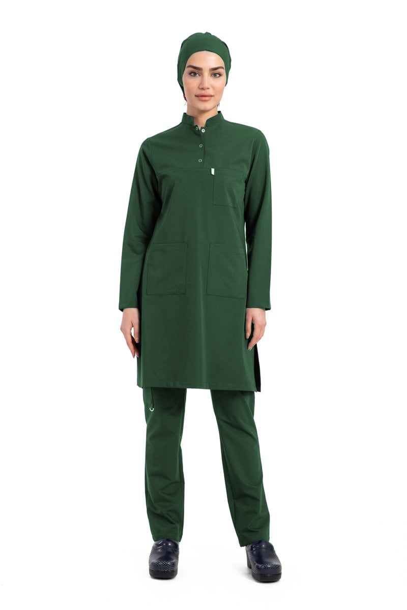 Labor Tesettür Scrubs Forma TST-03 | Elastik Likralı Pamuklu | Doktor & Hemşire 54/6XL Özel Sipariş - Haki Yeşil