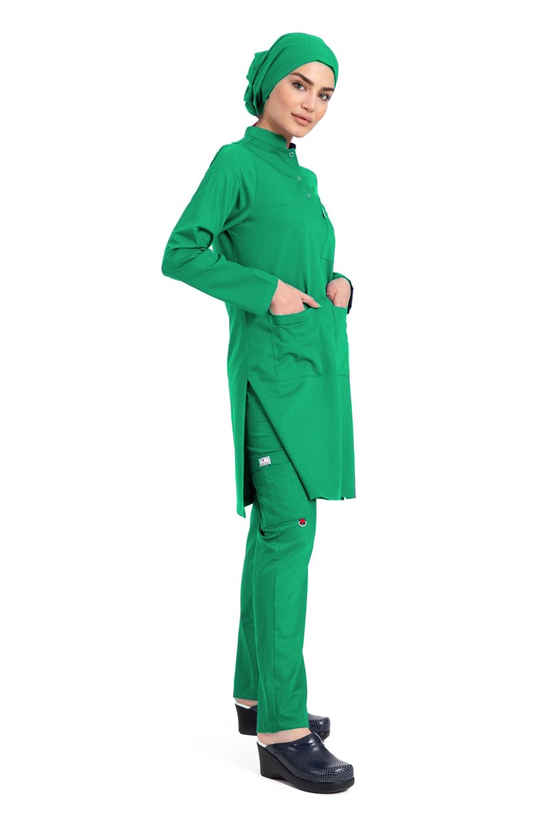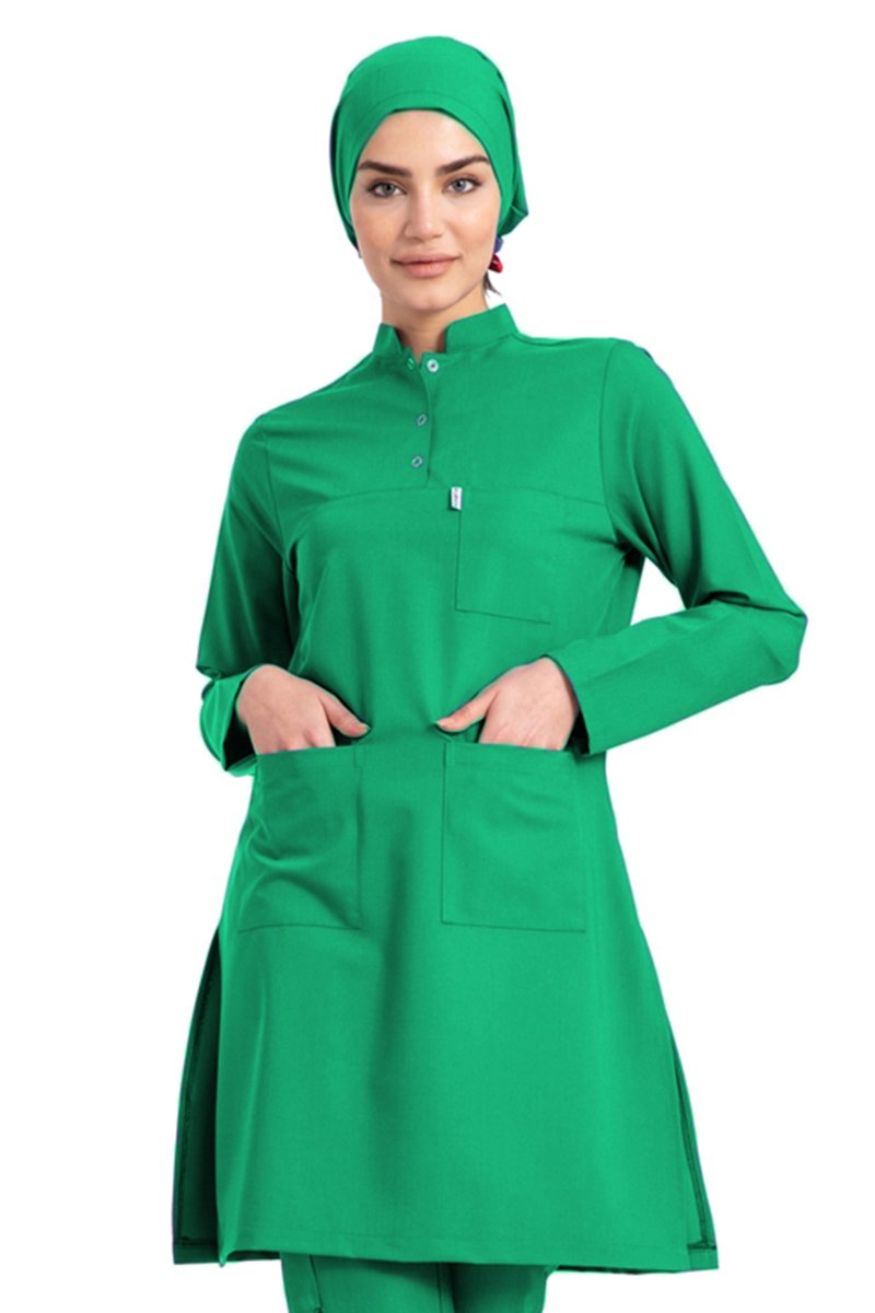 Labor Tesettür Scrubs Forma TST-03 | Elastik Likralı Pamuklu | Doktor & Hemşire 56/7XL Özel Sipariş - Çimen Yeşili