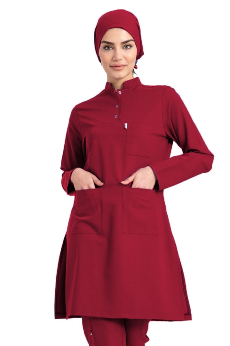 Likralı pamuklu tesettür üst forma hakim yaka tst-03 36/XS - Bordo
