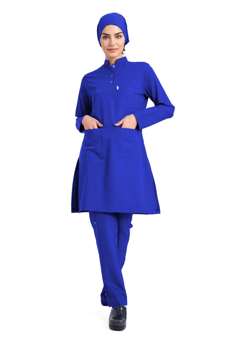Likralı pamuklu tesettür üst forma hakim yaka tst-03 40/M - Saks Mavi