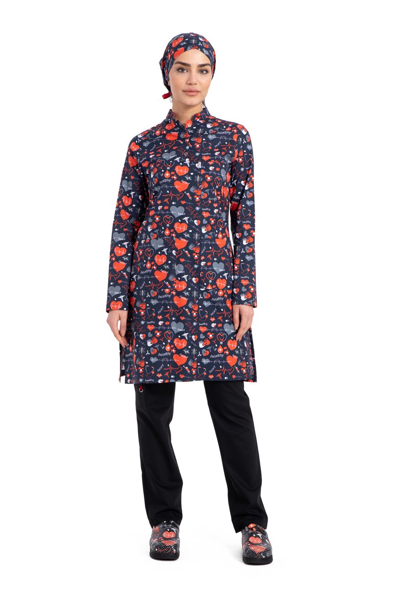 Likralı Pamuklu Tesettür Üst Forma Kalp Tıp Desenli