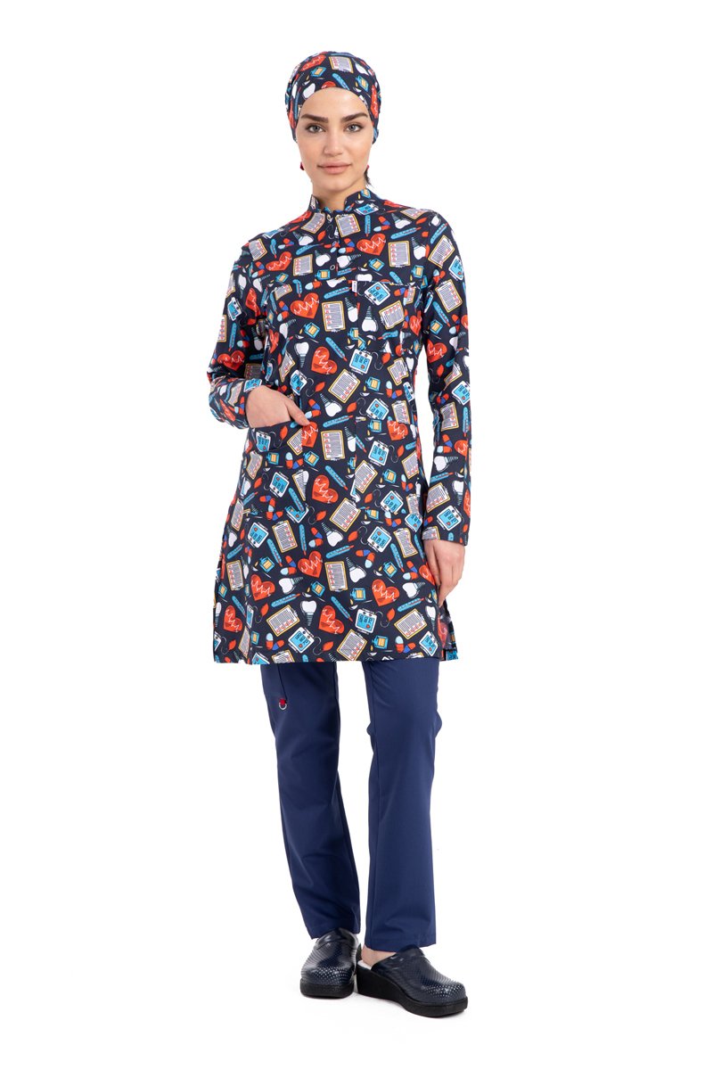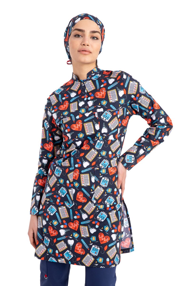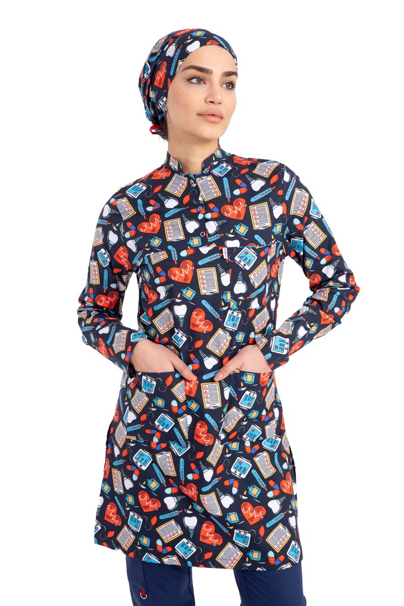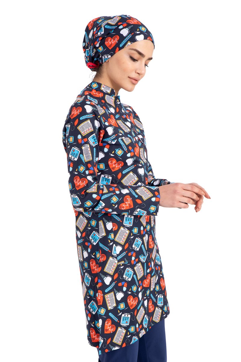 Likralı Pamuklu Tesettür Üst Forma Medikal Desenli