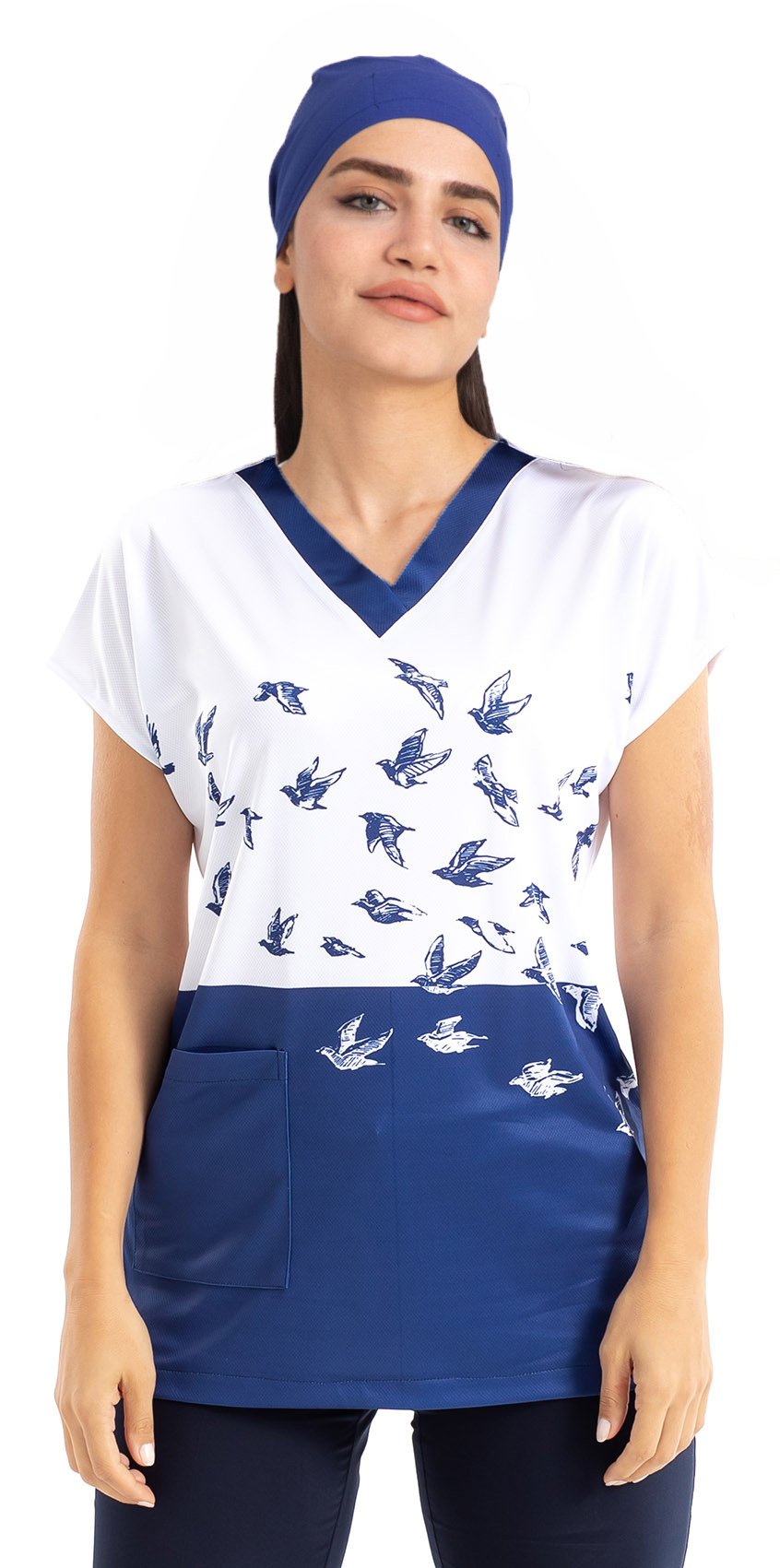 Mavi Martı Desenli Tek Üst Forma Kadın No:47