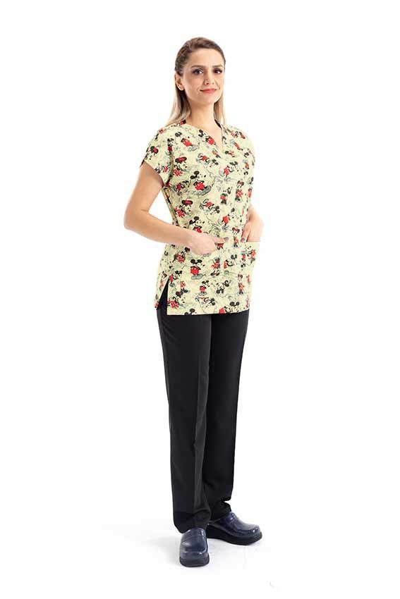 Desenli kadın cerrahi forma üstümüz, sadece şık bir görünüm sunmakla kalmaz, aynı zamanda çalışma koşullarınızda size konfor ve hijyen sağlar. Hemşirelik, sağlık hizmetleri gibi alanlarda çalışan kadınlar için ideal bir tercihtir.