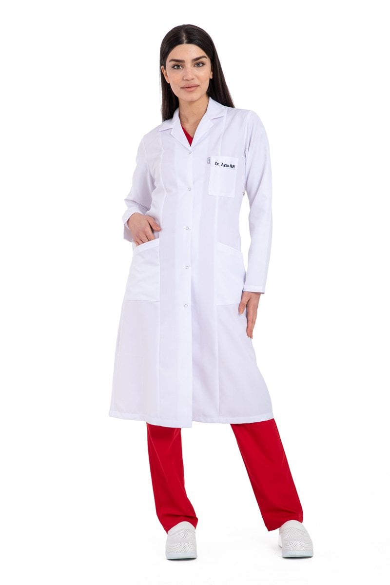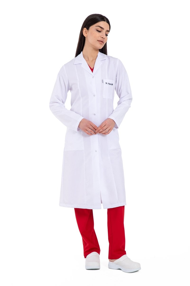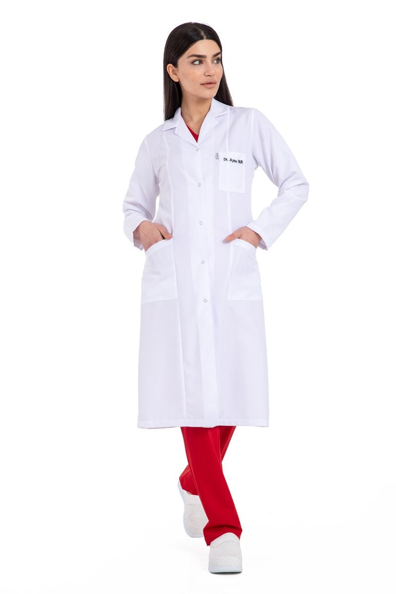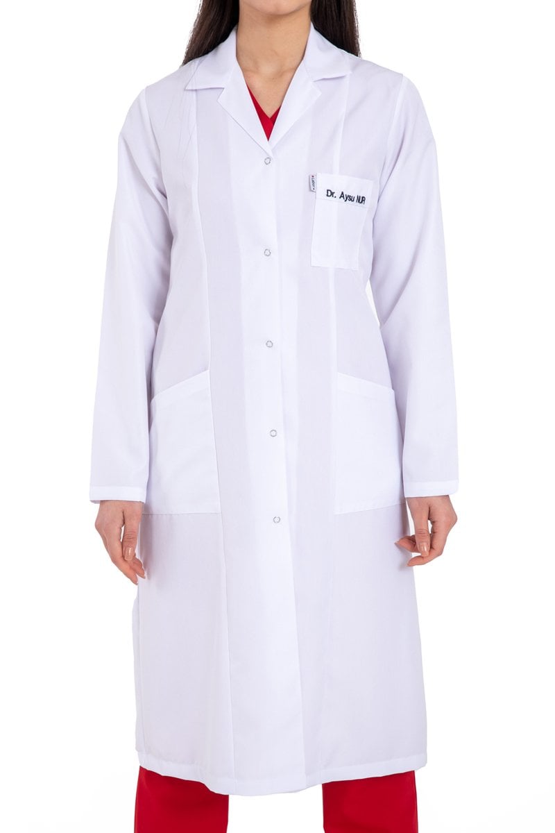Doğal Alpaka kumaştan imal edilen önlüğümüz ceket yakadır. Hemşire Doktor Teknisyen ve beyaz önlüğün kullanıldığı tüm sektörler için rahat ve şık bir modeldir. Doktor önlüğü özel tasarımı ile gün boyu yoğun çalışma temposunu rahatlıkla geçirmenizi sağlar. Tesettür önlük boyu 105 cm dir. Bedene göre birkaç cm daha kısa ya da uzun olabilir. Kulplu ve çıtçıtlı modeldir. Ayrıca veteriner hekimler tarafında da tercih edilir. Yıkaması ve ütüsü kolaydır. İsterseniz ufak bir ücret karşılığında nakış ile isminiz yazılabilir.