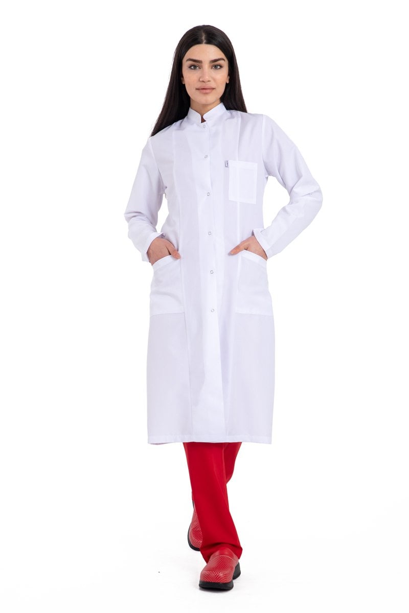 Doğal Alpaka kumaştan imal edilen önlüğümüz hâkim yakadır. Hemşire Doktor Teknisyen ve beyaz önlüğün kullanıldığı tüm sektörler için rahat ve şık bir modeldir. Doktor önlüğü özel tasarımı ile gün boyu yoğun çalışma temposunu rahatlıkla geçirmenizi sağlar.- Hâkim yaka olarak üretilmiştir.
