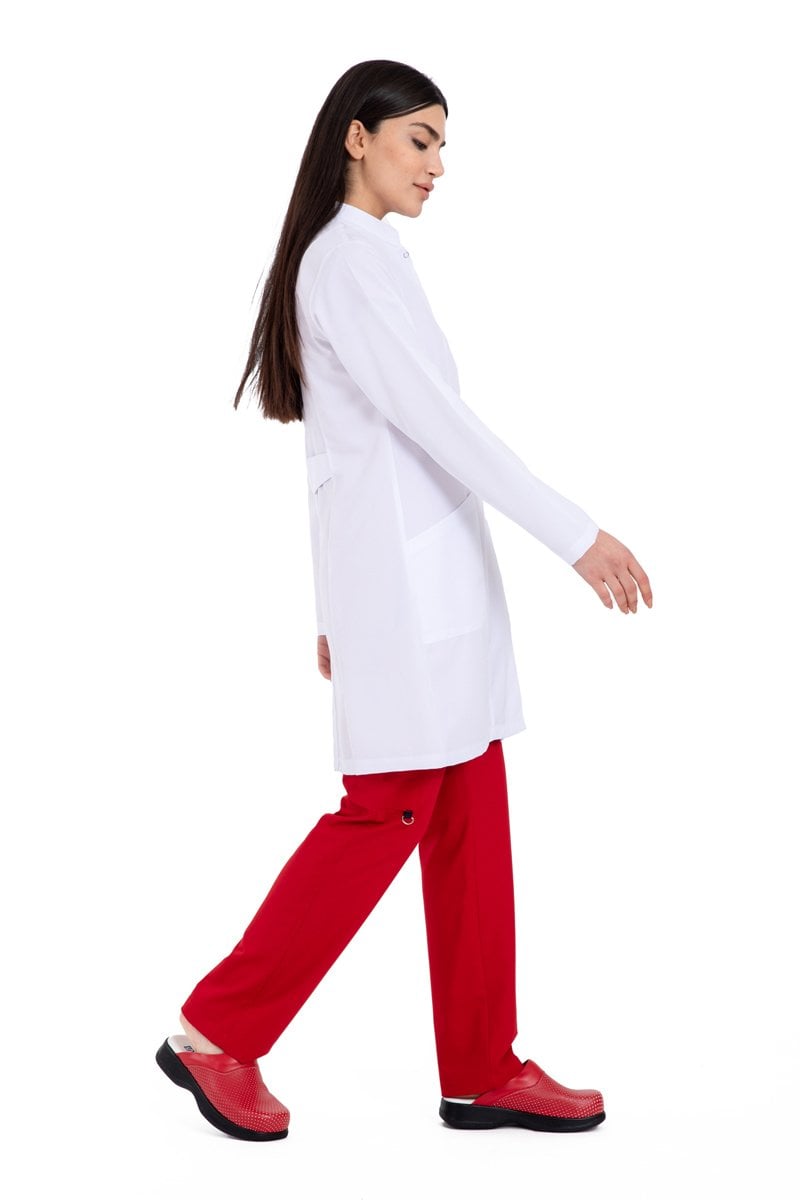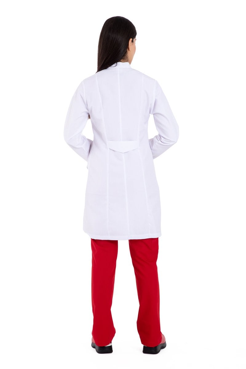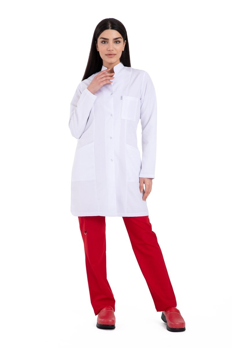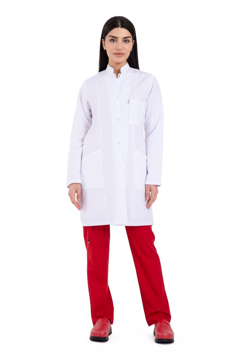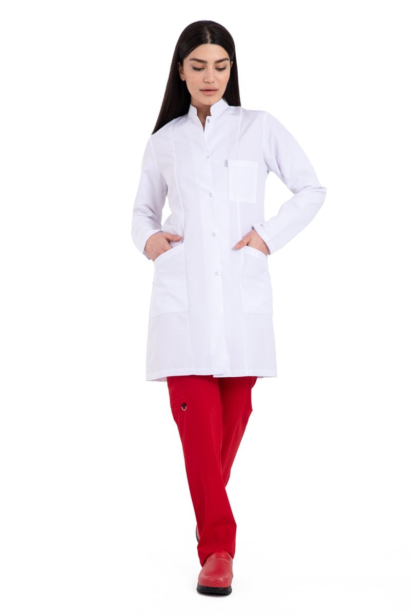 Alpaka kumaştan tasarlanan hâkim yaka bayan doktor önlük modeli, sadece tıp çevresi için değil eğitim camiasında da sıklıkla kullanılıyor. Sektörlerin beyaz önlük ihtiyacını ne kaliteli şekilde karşılayan önlük modelimiz, hâkim yaka şıklığıyla göze de hitap ediyor. 88 santim uzunluğundaki önlüklerimiz, 5 tane çıtçıtla tamamlanmıştır. Önlüğü giydiğinizde hareket özgürlüğünüzün kısıtlanmayacağını, gün boyu konforu hissedeceğinizi görebilirsiniz. Kadın doktor önlükleri, XS bedenden 3XL bedene kadar geniş beden seçeneklerine sahiptir. Medikal tekstil ürünlerinde bir numara olan alpaka kumaş yine bayan doktor önlüklerinde ön planda yer alıyor. Bir önlüğün rahat ve kaliteli olmasındaki en önemli etken kumaştır. Kumaşın dokusu, nefes alabilen bir yapıda olması, doktor önlüklerinin dayanıklı ve işlevsel olmasına zemin hazırlıyor.