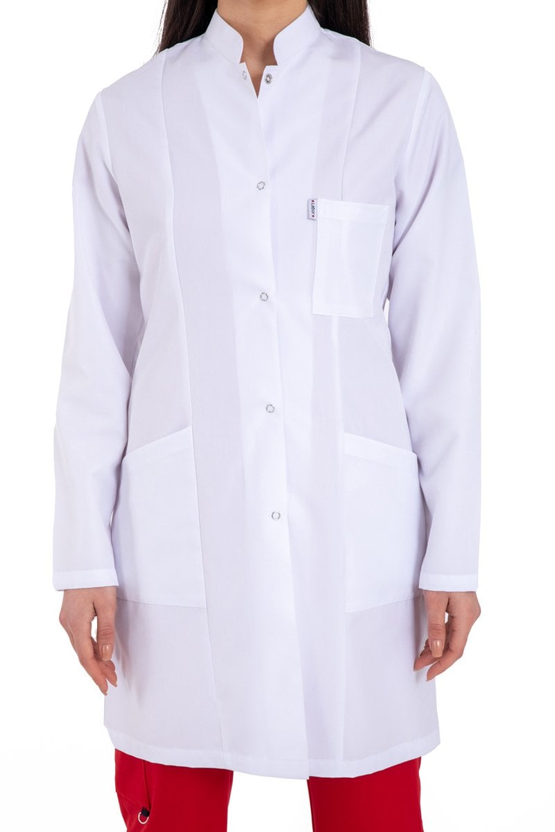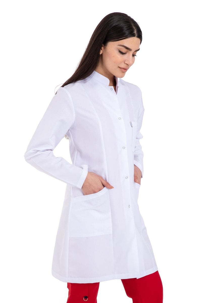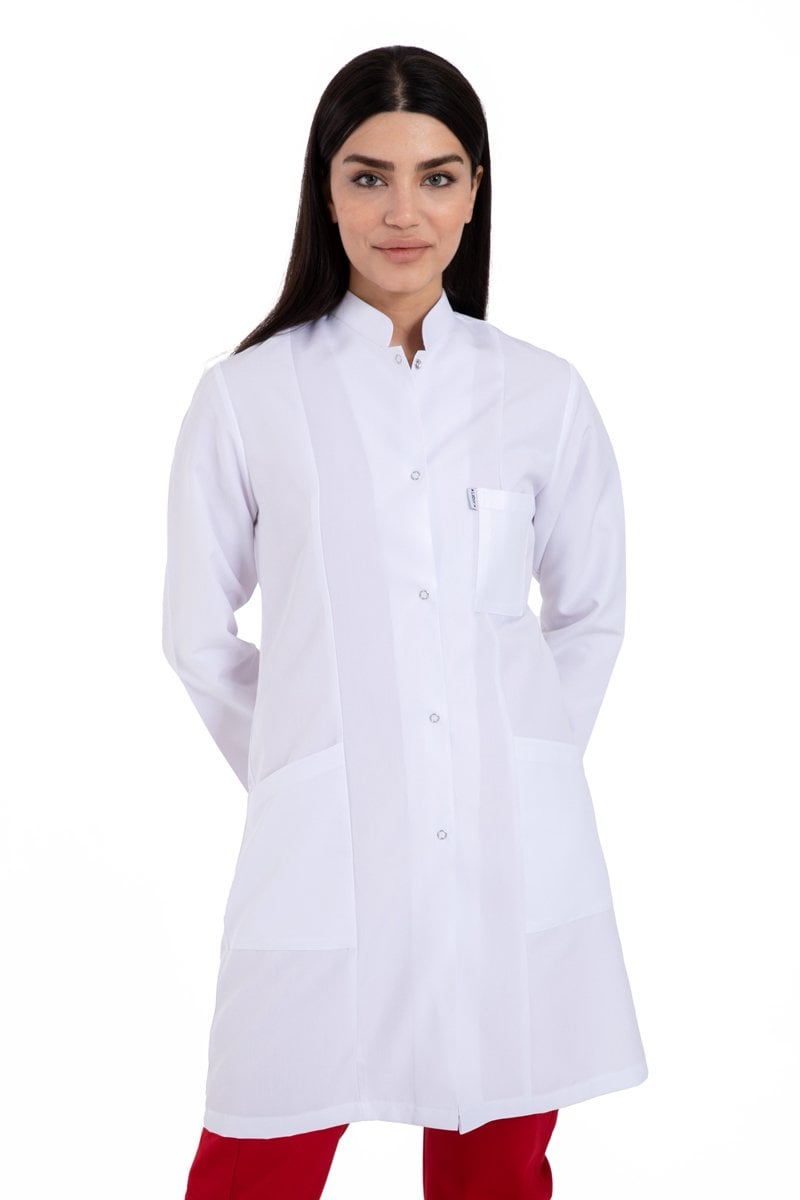 Doğal Alpaka kumaşdan imal edilen önlüğümüz ceket yakadır. Hemşire Doktor Teknisyen ve beyaz önlüğün kullanıldığı tüm sektörler için rahat ve şık bir modeldir. 5 adet çıtçıtı vardır. Boyu 88 cm dir.