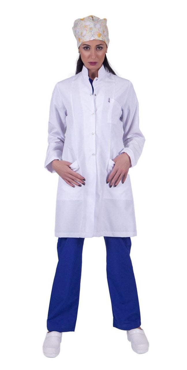 Profesyonel görünüm ve üstün konforu bir arada sunan bayan hakim yaka doktor, öğretmen önlüğümüz, doğal ve vücuda zarar vermeyen alpaka kumaştan üretilmiştir. 90 cm uzunluğu ve 5 adet paslanmaz çıtçıtı ile hem şık hem de kullanışlı bir tasarıma sahiptir. Çıtçıtlar, yıkama esnasında kumaşa ve önlüğe zarar vermez, uzun ömürlü kullanım sağlar.