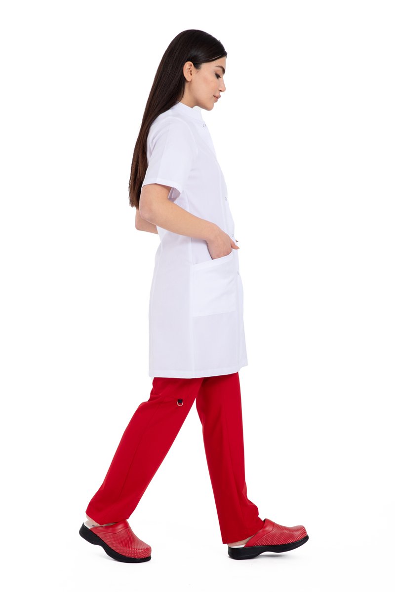 Uzun kollu önlükle rahat edemeyen çalışanlara yönelik özel olarak tasarlanmış kısa kollu doktor önlüğü özel tasarımı ile gün boyu yoğun çalışma temposunu rahatlıkla geçirmenizi sağlar. İsteğe bağlı olarak önlüklerin cep kısmına logo veya isim nakış işleme yapılabilmektedir.